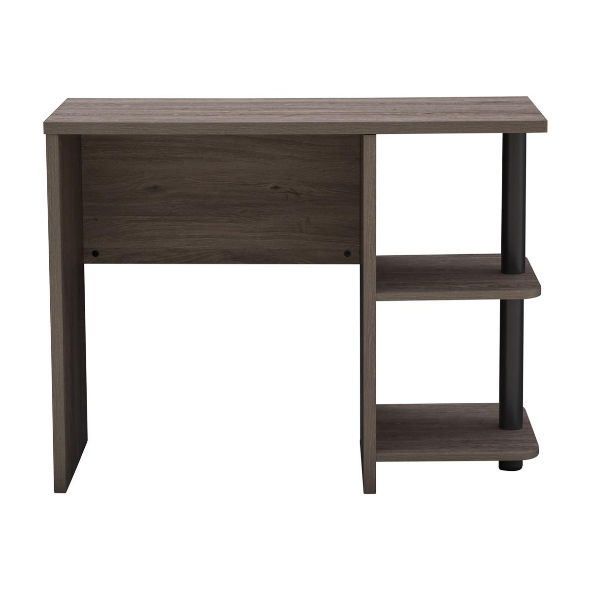 This charming desk is the perfect solution for small spaces, offering big functionality in a compact design. With two storage shelves, it keeps your workspace organized and clutter-free. Its durable construction and brown laminate finish add a touch of elegance to any room. Suitable for multiple rooms, including offices, living rooms, or bedrooms, this desk is easy to assemble and ready to use. Upgrade your space with this versatile and stylish desk today!