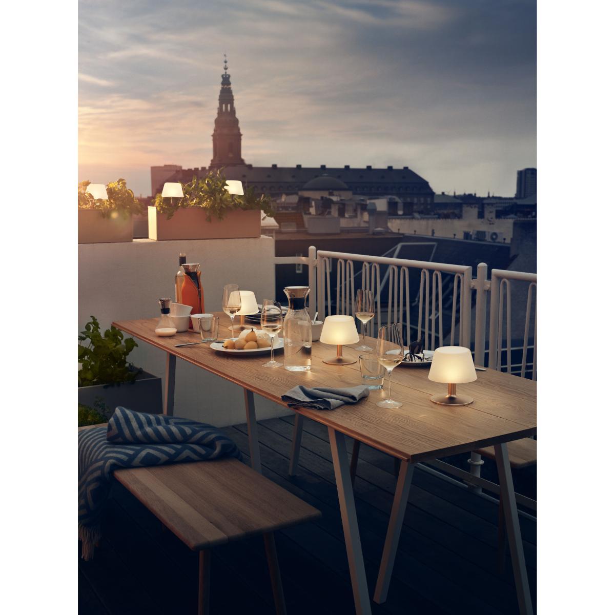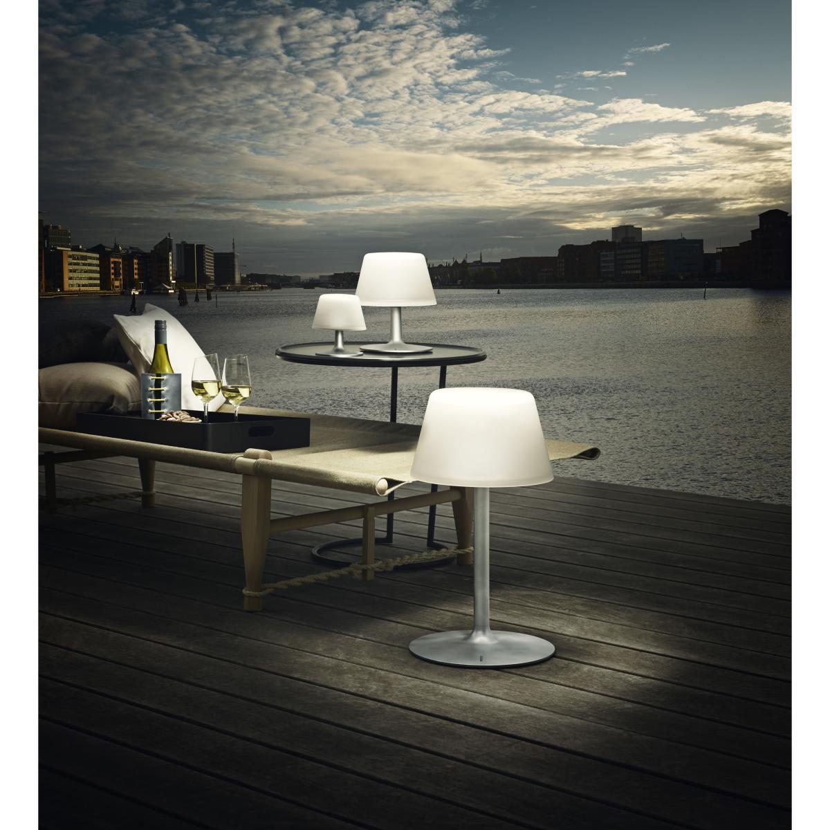 Put the light on when eating dinner on a terrace and extend your summer evenings till the end of the night with this stunning solar lamp. It is ultra practical, since it is wireless, can be hanged up anywhere on a metallic cable and doesn’t need to be plugged in. It features a glass lampshade and an aluminium structure, and provides decorative, soft light. This mobile lamp will go wherever you wish: it can be small mood light at the entrance or in a living room, or it would also be perfect on the on a garden table or when having a drink on a balcony. For perfect look, the solar energy collector is invisible, completely hidden under the lampshade. Having been charging in the sun for a day, the lamp provides up to 20 hours of lighting. This lamp features a traditional on/off switch and an automatic on/off function (the light automatically switches on and off depending on the surrounding light). A LED source (included) guarantees a minimum of 15000 hours of lighting. You have also the possibility to charge the lamp trough an USB cable (supplied).