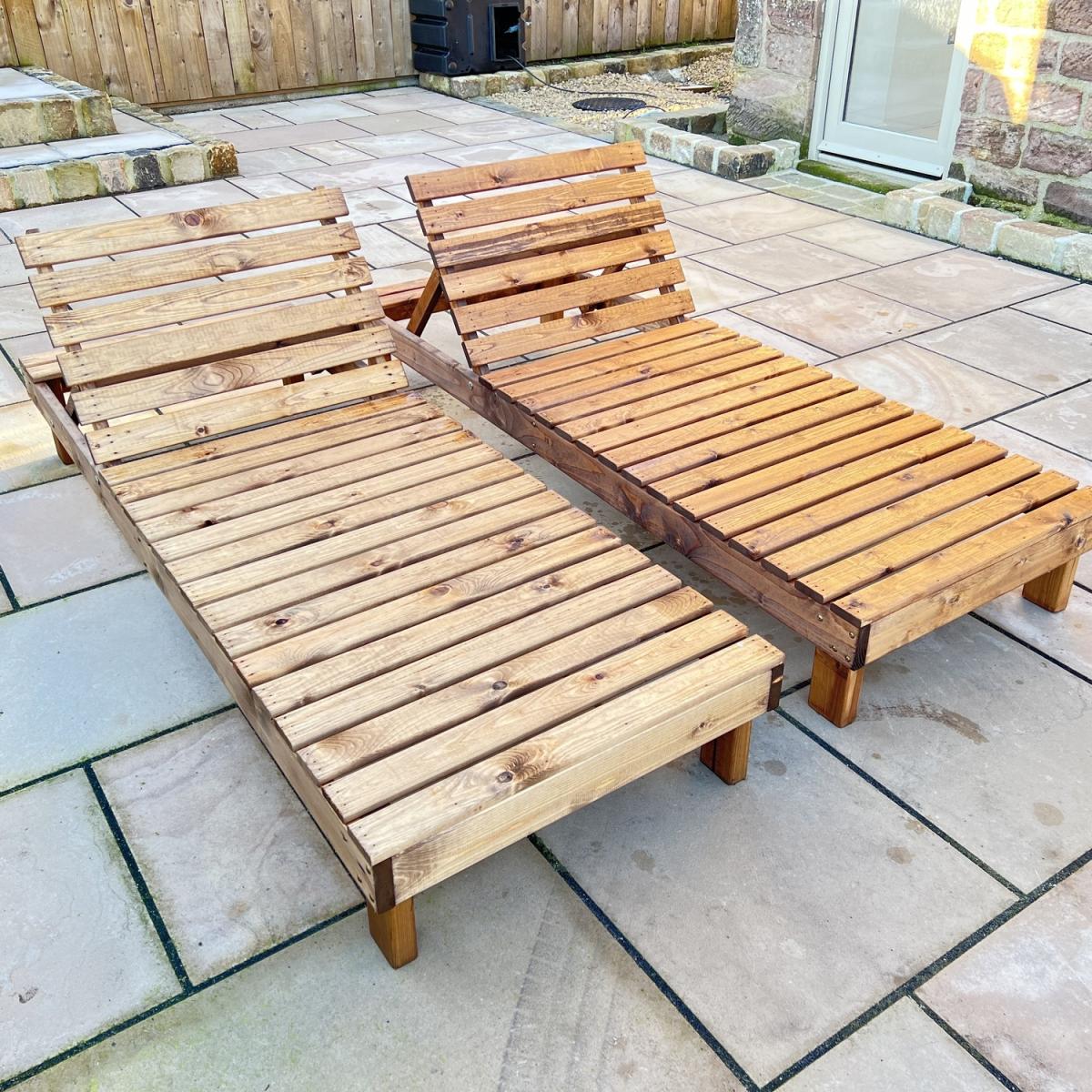 Charles Taylor Solid Wood Outdoor Sunlounger Set. This is constructed at our factory in the UK and manufactured from Solid Scandinavian Redwood. As the name implies, this timber grows in a cold climate. The slow growth associated with the low temperature produces a much denser, more robust wood which is perfect for outdoor use.