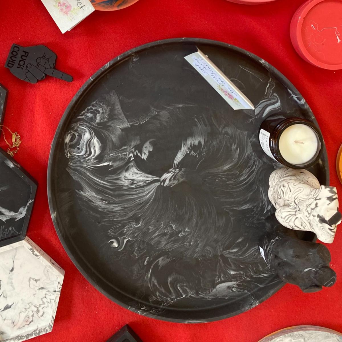 Sunnyside Up trays brighten up your home, while also helping you organize any clutter cleanly. It's the perfect piece to decorate a coffee table or bedside table. Made with a smooth finish, the trays also come with a cork backing to protect your surfaces. This large Panda piece is one-of-a-kind and will pair well with most furniture and home decor. By Shax products are handmade per order and will look slightly different to the product images. Pieces may also have small air bubbles, which is a result of the hand poured working process of jesmonite and is a natural, authentic finish.