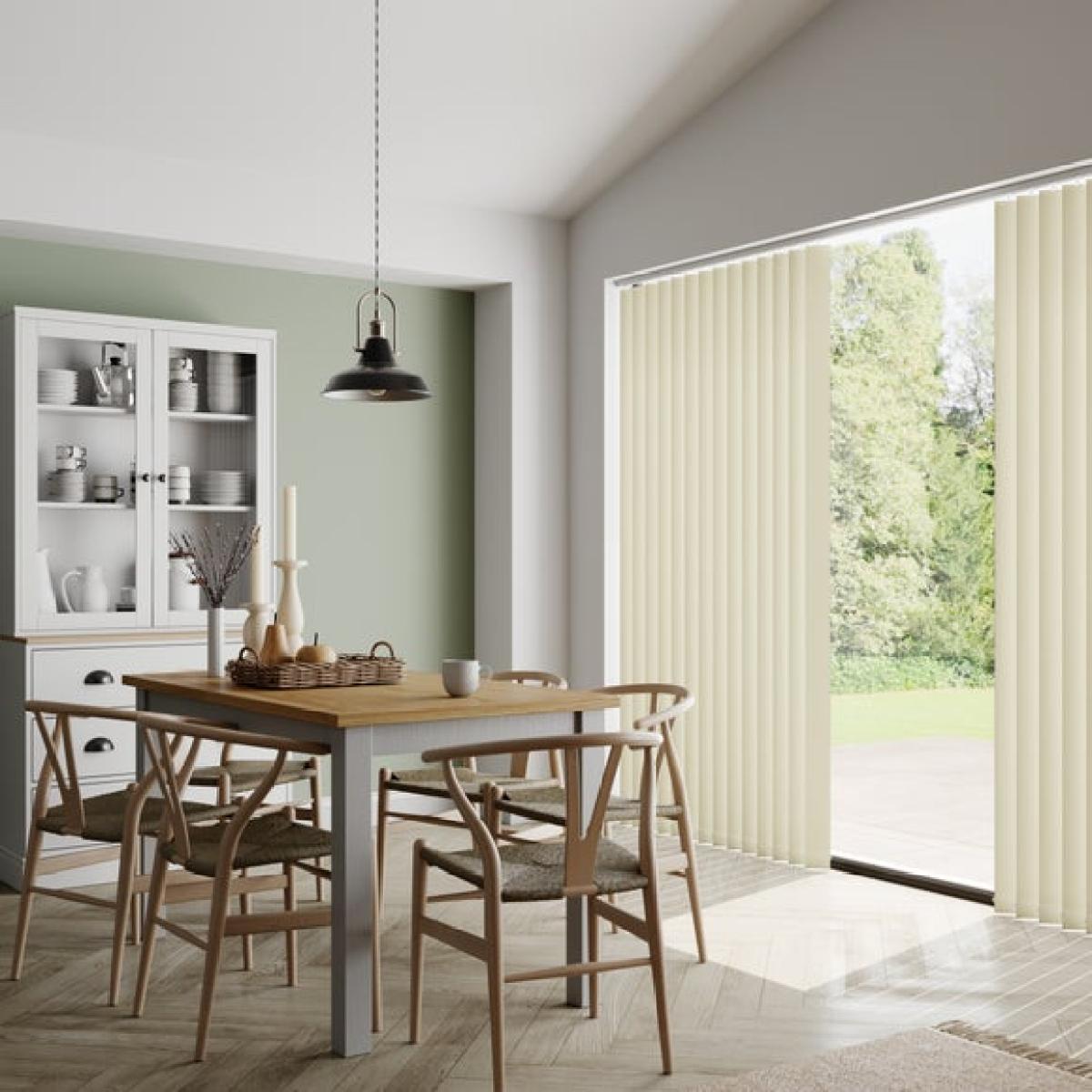 I love these blackout vertical blinds for their practical yet sleek design, making them perfect for bedrooms, media rooms, or any space where controlling light and privacy is a priority. The black-out feature ensures minimal light bleed, great for a good night's sleep or creating a cinema-like atmosphere. They work well in contemporary interiors, especially when paired with neutral or monochrome schemes, but can also add a structured contrast in more eclectic settings. For styling tips, consider them as part of a layered window treatment with sheer curtains or add bold curtain rods for a touch of character. Their clean lines and tailored look make them a versatile choice for a variety of interiors.
