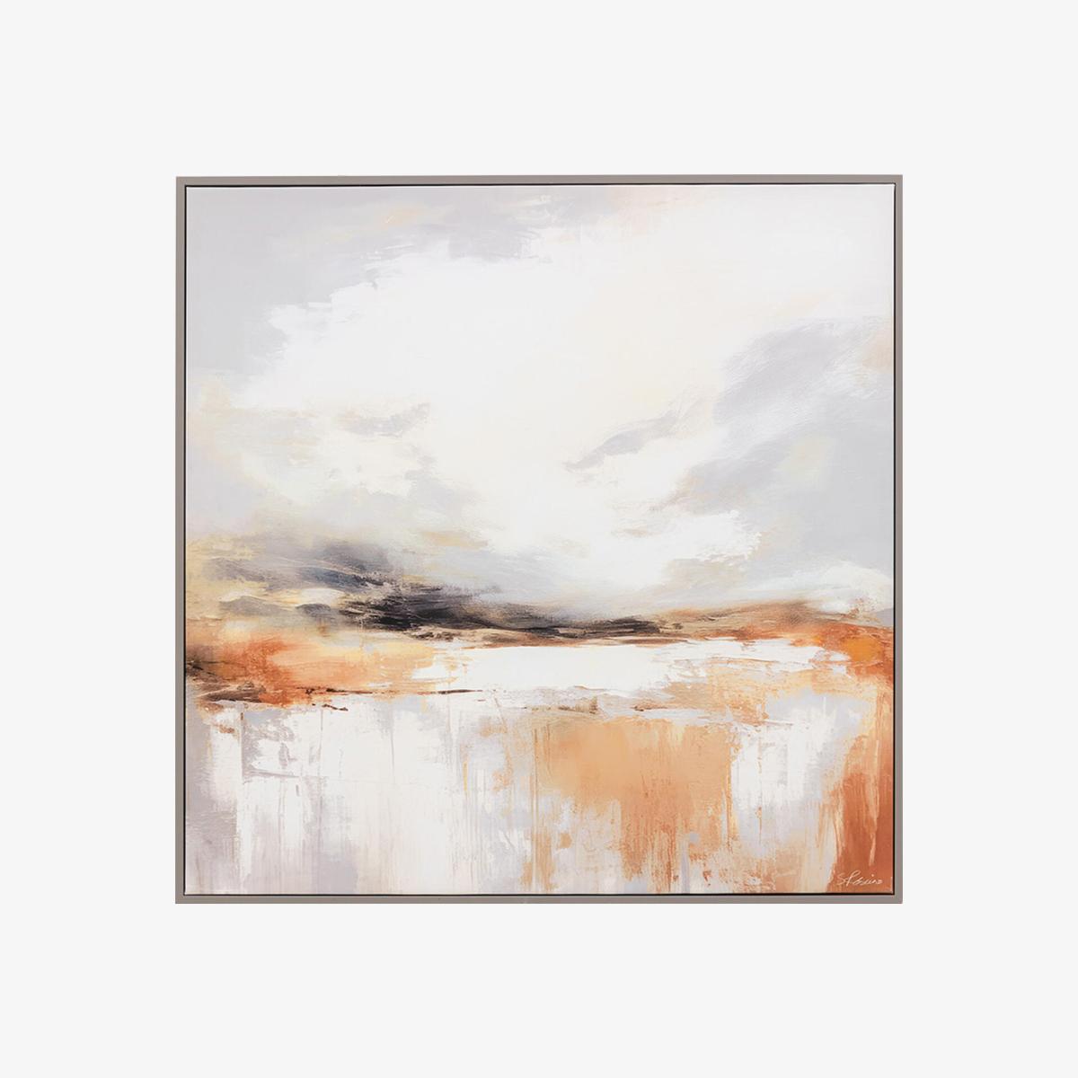Bring the golden hour into your home with the Sunset Hue Framed Canvas. Featuring harmonious blend of soft oranges and grey tones, this contemporary abstract piece beautifully captures a sunset whilst creating an inviting and tranquil atmosphere into the home.