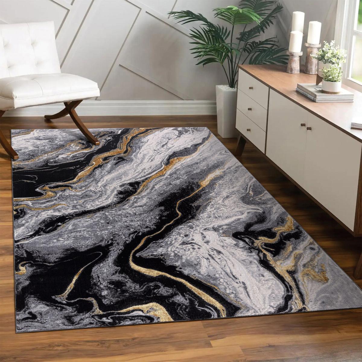 Bring a touch of sophistication to any space with the Sunset Lux Rug. Featuring a stunning marble-inspired design with metallic tones, this rug adds a modern and elegant feel to your space. Its plush texture provides comfort underfoot, perfect for unwinding after a long day.