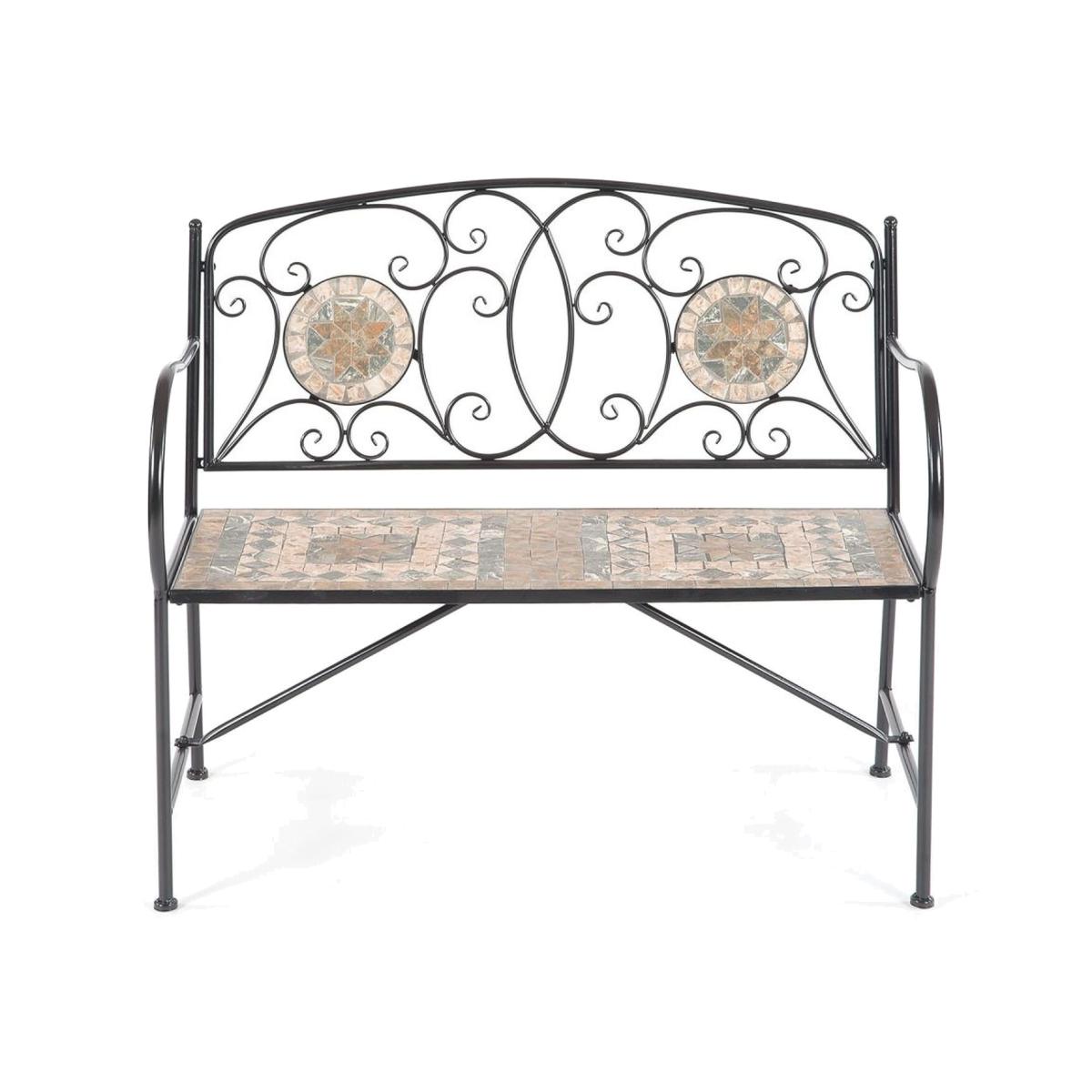 The Suntime Algiers Mosaic Bench is a beautifully designed outdoor bench that adds both style and functionality to your garden or patio. Featuring a hand-crafted mosaic design on the seat and backrest, this bench creates a colorful and eye-catching focal point. Made with a durable metal frame, it is built to withstand outdoor elements, ensuring long-lasting use. The Algiers Mosaic Bench is perfect for relaxing outdoors, offering comfort and a touch of Mediterranean charm to your outdoor space. Suntime Algiers Mosaic Bench - Black