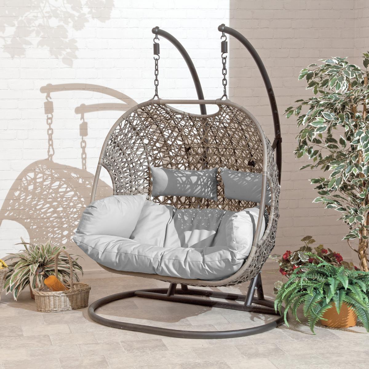 Introducing the Suntime Double Brampton Cocoon Chair - the perfect addition to your outdoor living space. This beautifully designed chair features a comfortable grey polyester UKFR seat and two head cushions, providing ultimate relaxation for you and a friend. Crafted with a sturdy welded tubular powder-coated steel frame, this chair is built to withstand the elements and provide long-lasting durability. The 20mm espresso brown PE rattan adds a touch of elegance to the chair, while also being weather-resistant and easy to maintain. Whether you're looking to unwind with a good book or enjoy some quality time with a loved one, the Suntime Double Brampton Cocoon Chair offers the perfect spot to do so. So why wait? Bring home this luxurious and comfortable outdoor furniture piece and take your relaxation game to the next level!
