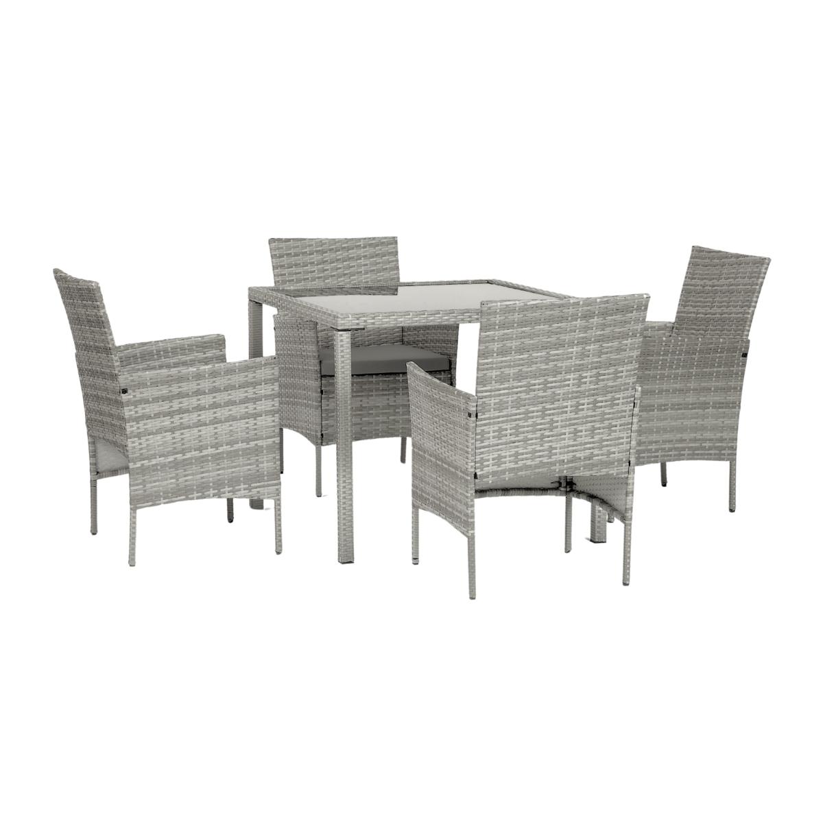 Perfect for small gatherings, this set includes a spacious dining table and four chairs, ideal for enjoying meals or entertaining guests in your garden, patio, or balcony. The set's contemporary design, with clean lines and a neutral color palette, makes it a versatile addition to any patio, garden, or balcony. Ideal for enjoying outdoor meals in comfort, the Suntime Fiji 4 Seat Dining Set offers both practicality and elegance for your alfresco dining experience. Suntime Fiji 4 Seat Dining Set - Grey