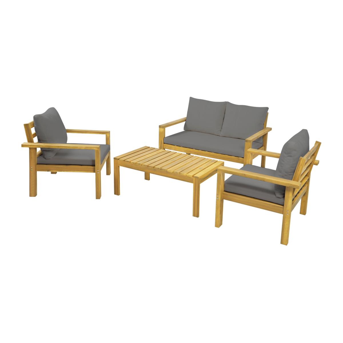Introducing the Suntime Harley Sofa Set, designed to transform your outdoor space into a cozy retreat. Crafted from durable acacia wood, this set features one double sofa, two single sofas, and a stylish coffee table. Each sofa in the Suntime Harley Sofa Set is generously cushioned, with a seat thickness of 8cm and a pillow thickness of 15cm, ensuring optimal comfort for lounging outdoors. Whether you're enjoying a solo relaxation session or hosting a gathering with friends, this set provides the perfect seating solution. Accompanying the sofas is a sleek coffee table, measuring 101x50x40cm, offering ample space for drinks, snacks, or decor items. With its chic design and sturdy construction, the Suntime Harley Sofa Set is an ideal addition to any patio, balcony, or garden space. Elevate your outdoor living experience with the Suntime Harley Sofa Set and create a welcoming environment for leisure and socializing.