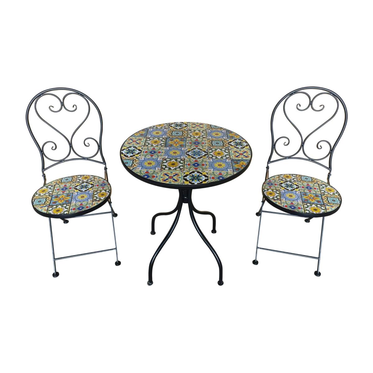 Introducing the Marrakesh 60cm Bistro Set, boasting bright and vibrant colors and a unique design that instantly adds flair to your outdoor space. Crafted with an iron frame for durability, this set not only offers eye-catching aesthetics but also ensures longevity. The standout feature of this set is its matching design, where every element seamlessly complements the other, creating a cohesive and visually stunning ensemble. Whether you're enjoying a morning coffee or hosting a casual gathering with friends, the Marrakesh Bistro Set provides the perfect backdrop for unforgettable moments. With its compact 60cm size, this set is ideal for smaller outdoor areas such as patios, balconies, or terraces, allowing you to make the most of your space without compromising on style. Elevate your outdoor experience with the Marrakesh Bistro Set and indulge in the beauty of its bright and vibrant colors while lounging in comfort and style.