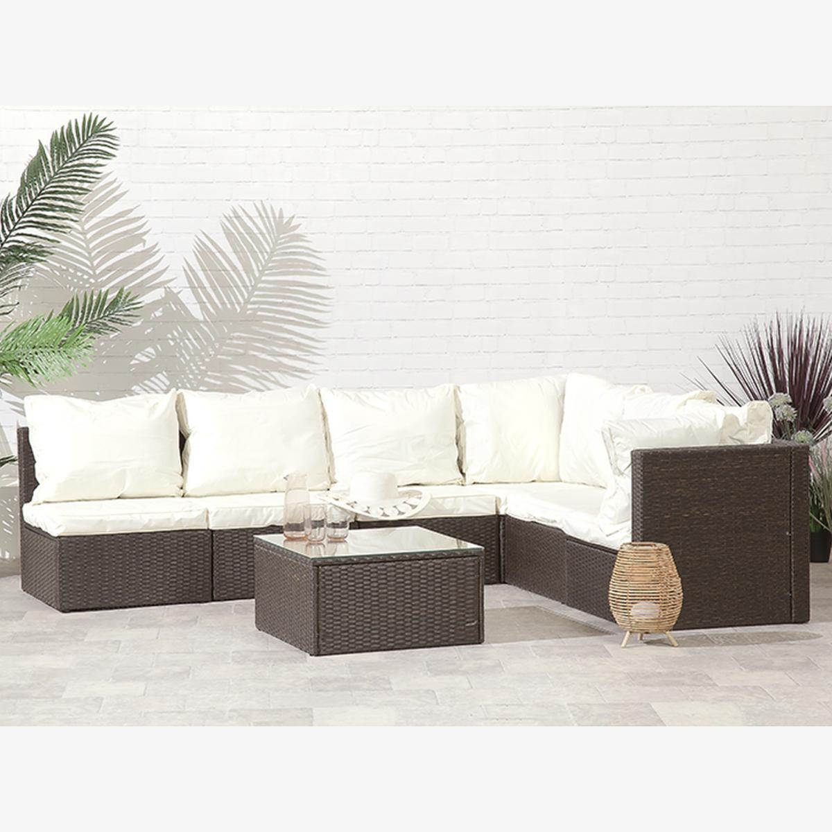 Indulge in outdoor luxury with our Modular Corner Sofa with Coffee Table. Crafted from durable brown rattan and featuring a robust steel frame, this set promises both style and resilience. Sink into relaxation with its plush 10cm thick beige cushions, offering unmatched comfort for lounging or entertaining. The included coffee table provides convenience and functionality, making it perfect for serving drinks or snacks. Elevate your outdoor living space with this versatile and chic modular sofa set, designed to enhance any patio or garden area.