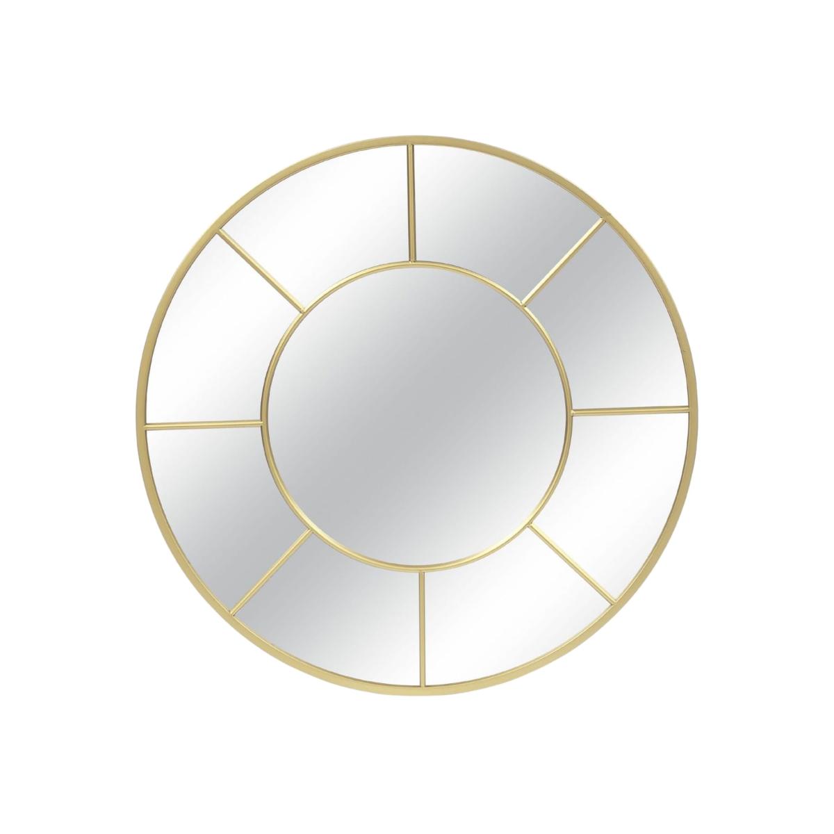 Introducing the Suntime Round Mirror, a stunning addition to your home decor collection. This captivating mirror features a round design, meticulously crafted from iron and adorned with luxurious gold paneling. Embodying elegance and sophistication, the Suntime Round Mirror adds a touch of opulence to any room or area it graces. Its radiant gold paneling reflects light beautifully, creating a warm and inviting ambiance in your living space. Perfect for entryways, living rooms, bedrooms, or outdoor areas, this mirror serves as both a functional and decorative piece, enhancing the overall aesthetics of your interior or exterior design. Let the Suntime Round Mirror become the focal point of your home, exuding timeless beauty and style.