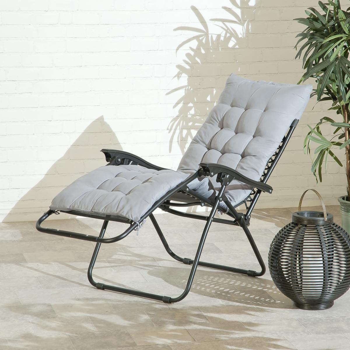 Introducing the Suntime Padded Royale Relaxer, the ultimate in outdoor relaxation! This premium-quality chair is designed to provide you with the ultimate in comfort and support, so you can enjoy the great outdoors in style. Crafted from a sturdy black steel powder-coated frame, this chair is built to withstand the elements and provide you with years of reliable use. The textelene base is not only durable and long-lasting, but it's also breathable and easy to clean, making it the perfect choice for outdoor use. The UKFR padded cushion adds an extra layer of comfort, providing you with a luxurious seating experience that you won't find anywhere else. And with a maximum weight capacity of 120kg, this chair is perfect for people of all shapes and sizes. The Suntime Padded Royale Relaxer also features a unique locking system that allows you to recline the chair vertically and lock it into place at the perfect angle. Whether you're reading a book, soaking up some sun, or just enjoying the fresh air, this chair is the perfect choice for anyone looking to relax and unwind. And with its sleek and modern design, the Suntime Padded Royale Relaxer is sure to complement any outdoor decor. So why wait? Treat yourself to the ultimate in outdoor relaxation and order your Suntime Padded Royale Relaxer today!