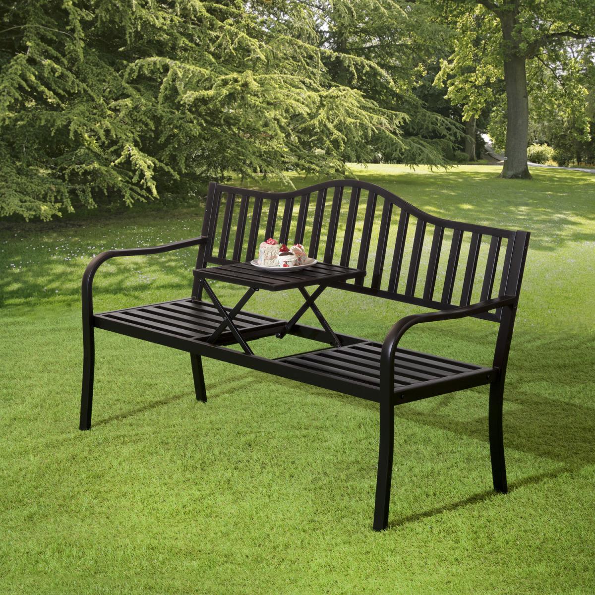 Introducing the Suntime Garden Bench with a Built-in Table that easily transforms into a Tete a Tete - the perfect addition to your outdoor living space!Crafted with a full steel frame that is powder-coated for durability, this bench is built to last. The bench's overall size of 150x60x90cm provides ample seating space for two, while the built-in table measuring 40x40cm provides a convenient surface for drinks, snacks, and other essentials. The unique design of this garden bench allows it to easily transform into a Tete a Tete, which provides a cosy and intimate seating experience for two. Whether you're enjoying a morning coffee or an evening cocktail with a loved one, this bench has got you covered. With its sleek and modern design, this garden bench will complement any outdoor decor. Its versatile and functional design makes it perfect for any outdoor setting, whether it's a garden, patio, or balcony. Overall, the Suntime Garden Bench with Built-in Table is a must-have for anyone who loves spending time outdoors. Its durable construction, versatile design, and ample seating space make it the perfect addition to any outdoor living space. Order yours today and start enjoying the great outdoors in style and comfort!
