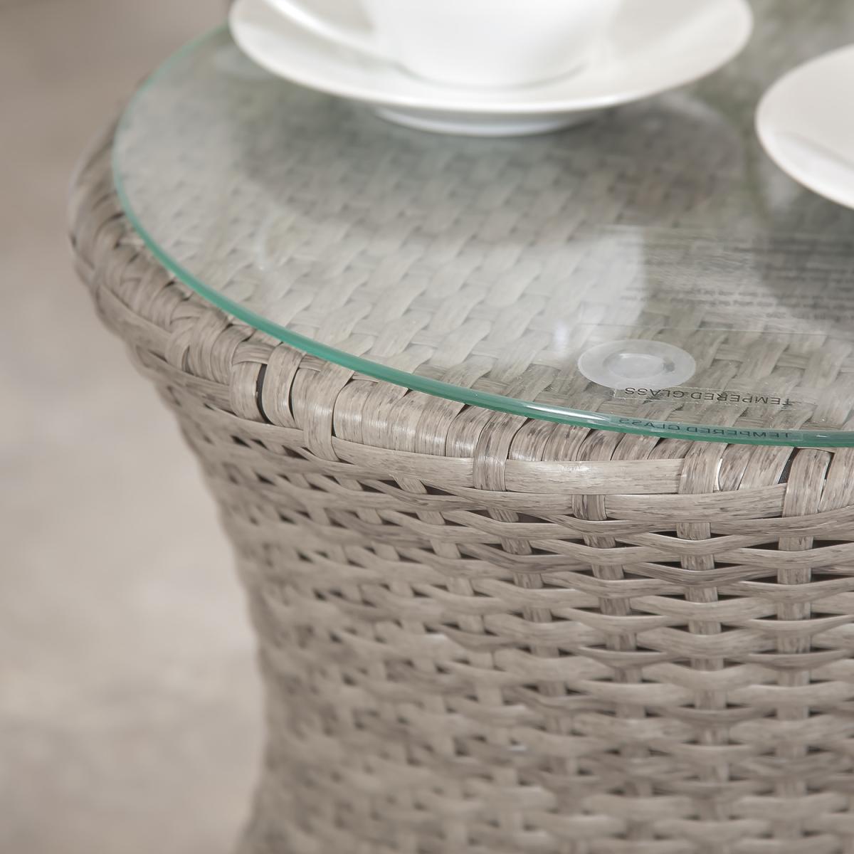 The Suntime Toulouse Bottle Rattan Bistro Set is the perfect addition to any outdoor space, providing a stylish and comfortable setting for two people to relax and enjoy a drink or just to relax. The set includes a 42cm diameter table, constructed with a 1.2mm PE flat rattan that is both durable and weather-resistant. The table is topped with a 5mm tempered glass surface that adds a touch of sophistication to the overall design. The chairs are also made of the same high-quality PE flat rattan material and come complete with 180gm2 UKFR fabric cushions that are 5cm thick and finished in an attractive grey colour. These cushions provide added comfort and support, allowing you to sit and relax for extended periods. The cushions are also fire-resistant and comply with UKFR regulations for added safety. The Suntime Toulouse Bottle Rattan Bistro Set is not only comfortable and stylish but also easy to maintain. The rattan material is resistant to UV light and water, making it ideal for use outdoors. Simply wipe down with a damp cloth to keep it looking as good as new. This bistro set is perfect for enjoying a coffee with a friend, or for adding a touch of style to your balcony, patio, or garden. Its compact design makes it ideal for smaller outdoor spaces, and the lightweight chairs can be easily moved to different locations as needed. The Suntime Toulouse Bottle Rattan Bistro Set is a must-have for anyone looking for a practical and stylish outdoor seating solution.