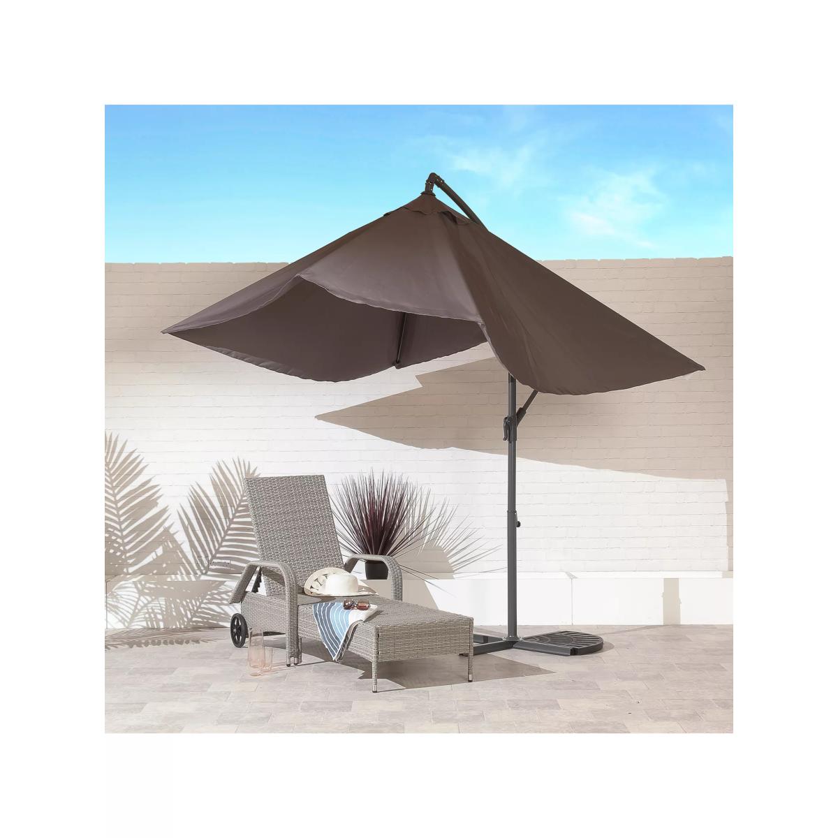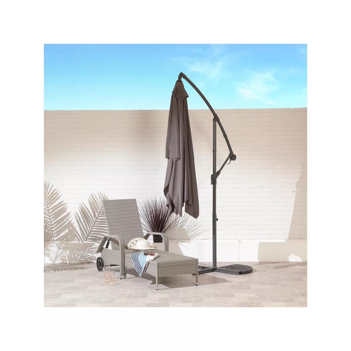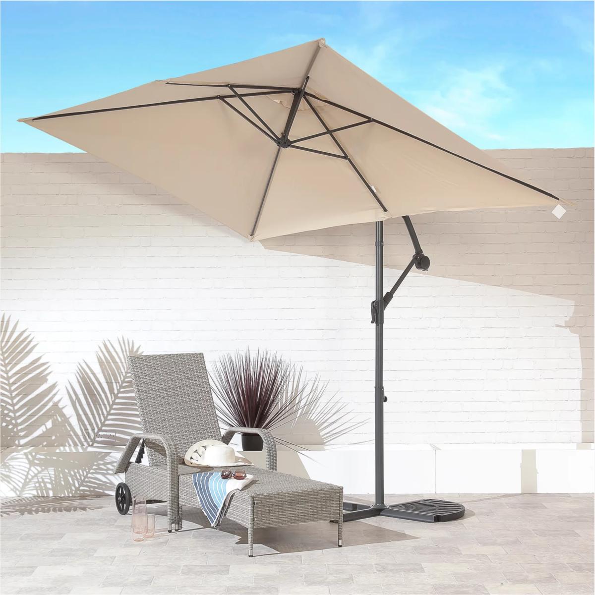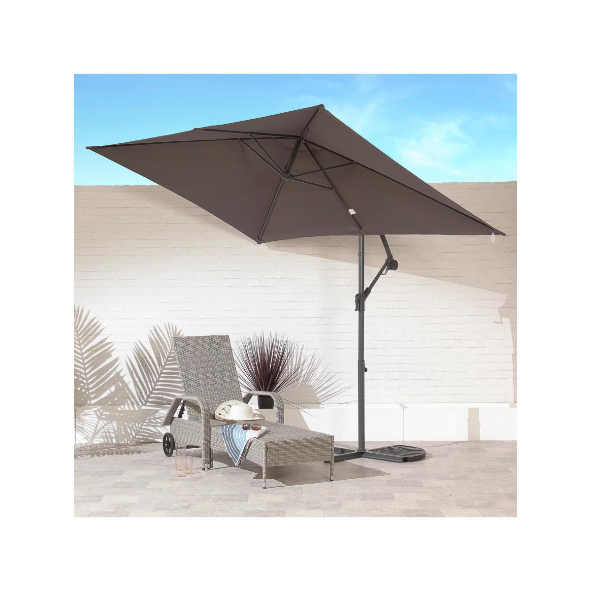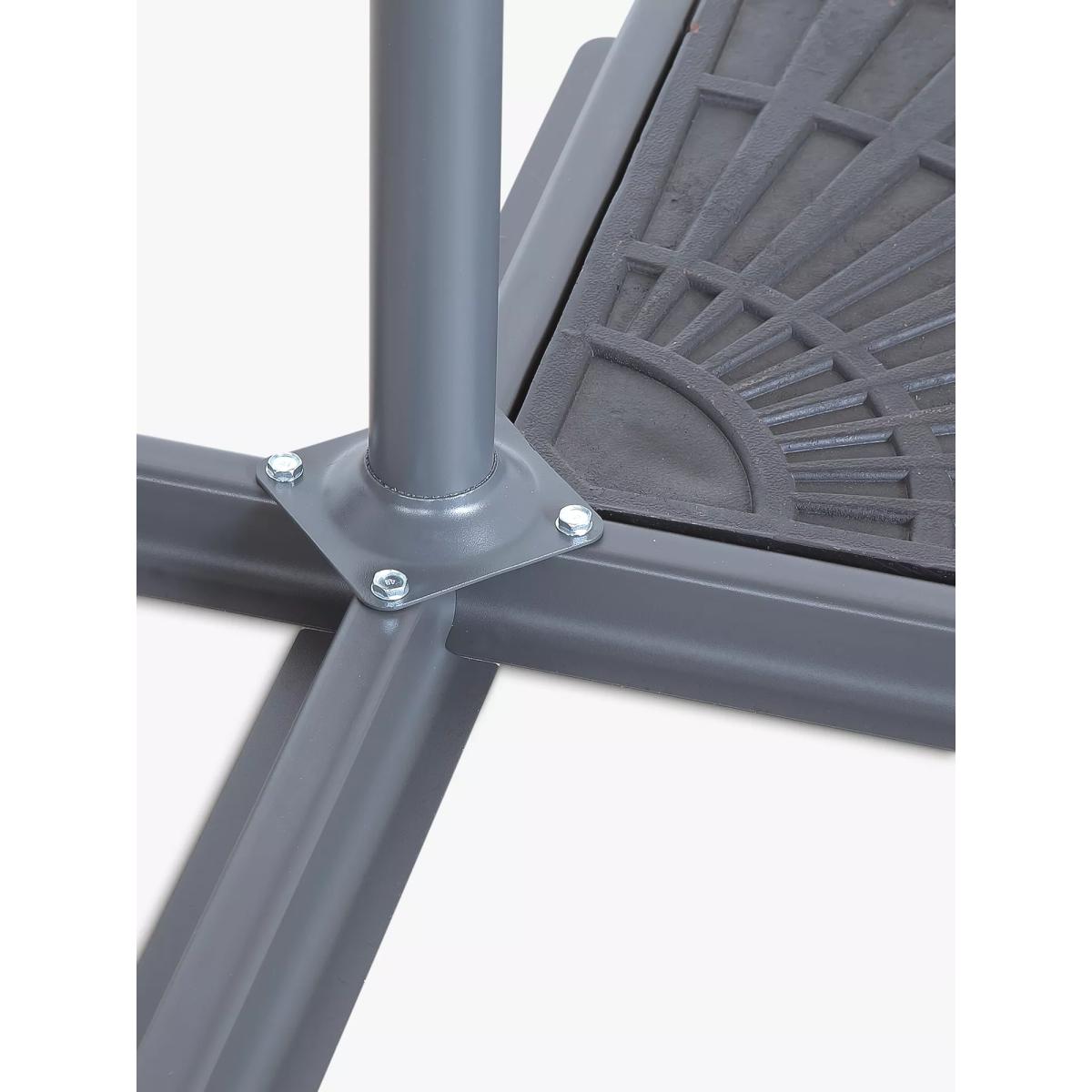 Elevate your outdoor living space with the 2 x 3m Rectangular Parasol from Suntime. Made with a sleek powder-coated, weather-proof charcoal grey steel frame and six sturdy steel ribs, this parasol combines durability and elegance. The 160g/m2 canopy offers generous coverage while the air vent enhances airflow to keep you cool on hot summer days. The steel cross base provides stability and ensures secure placement. Whether you're enjoying a family gathering or simply relaxing in the shade, this parasol delivers reliable shade and adds a touch of sophistication to your patio or garden. Good to know: Base included but base weights are not included. Parasol requires four quarter base weights, either water-fillable or resin base weights measuring H7.5 x W50 x D50cm with a combined weight of 60kg.