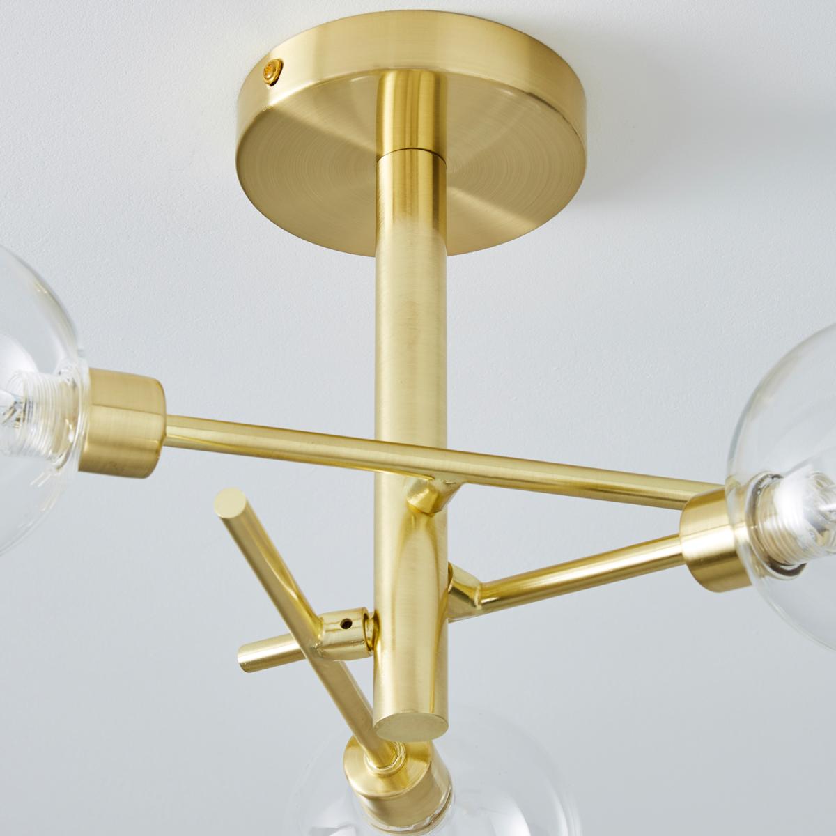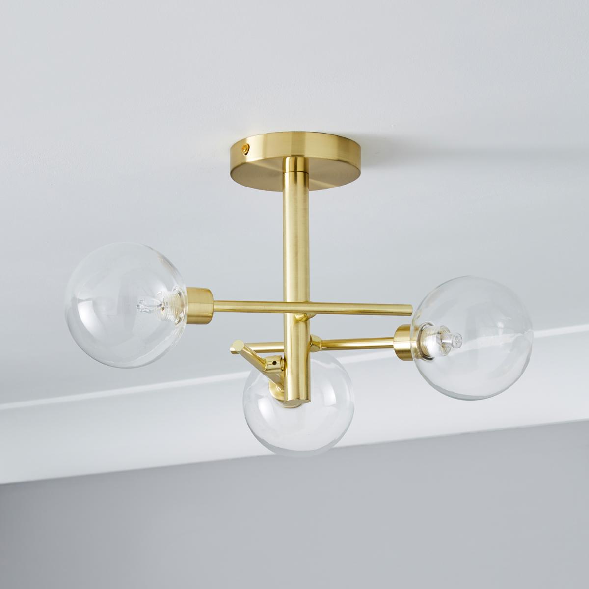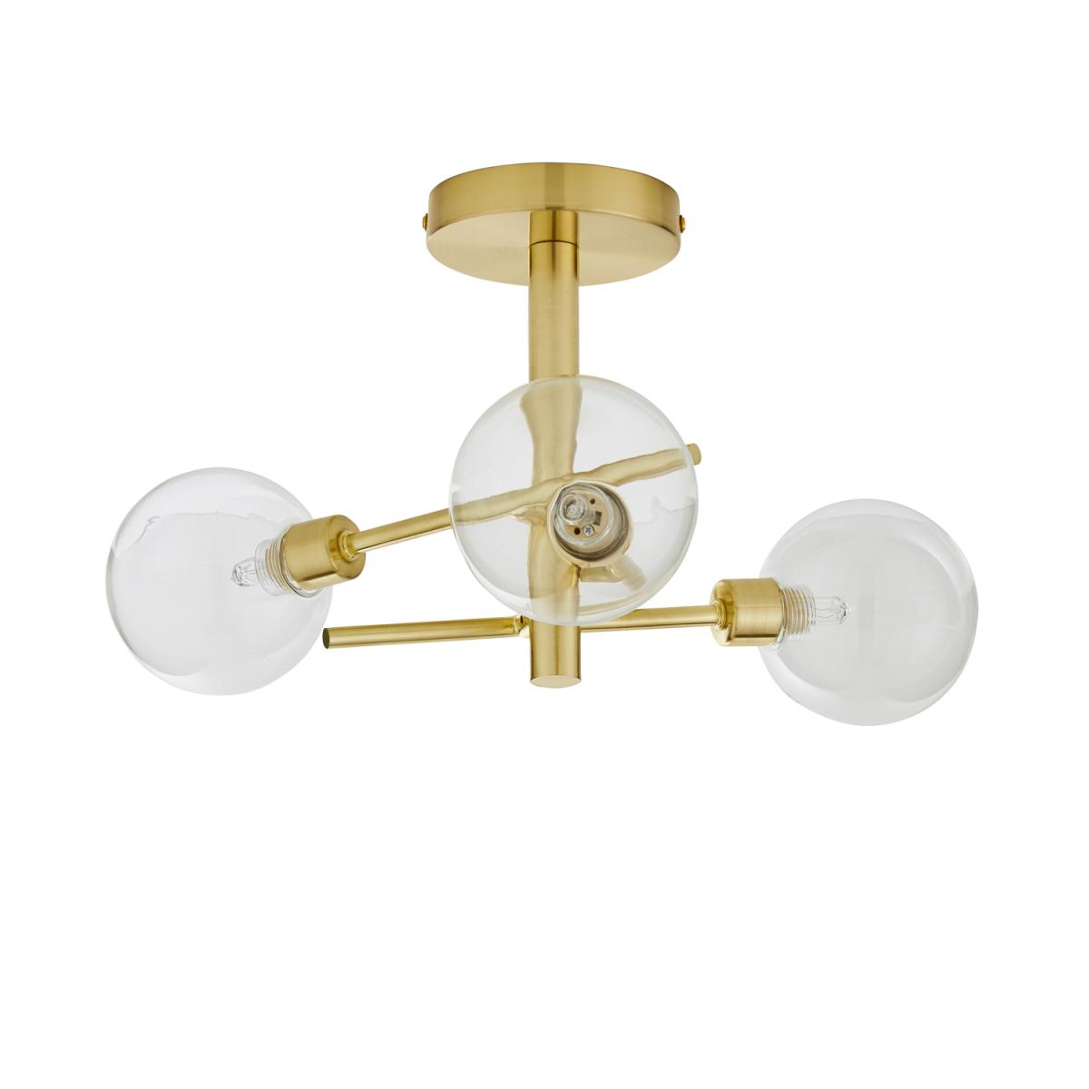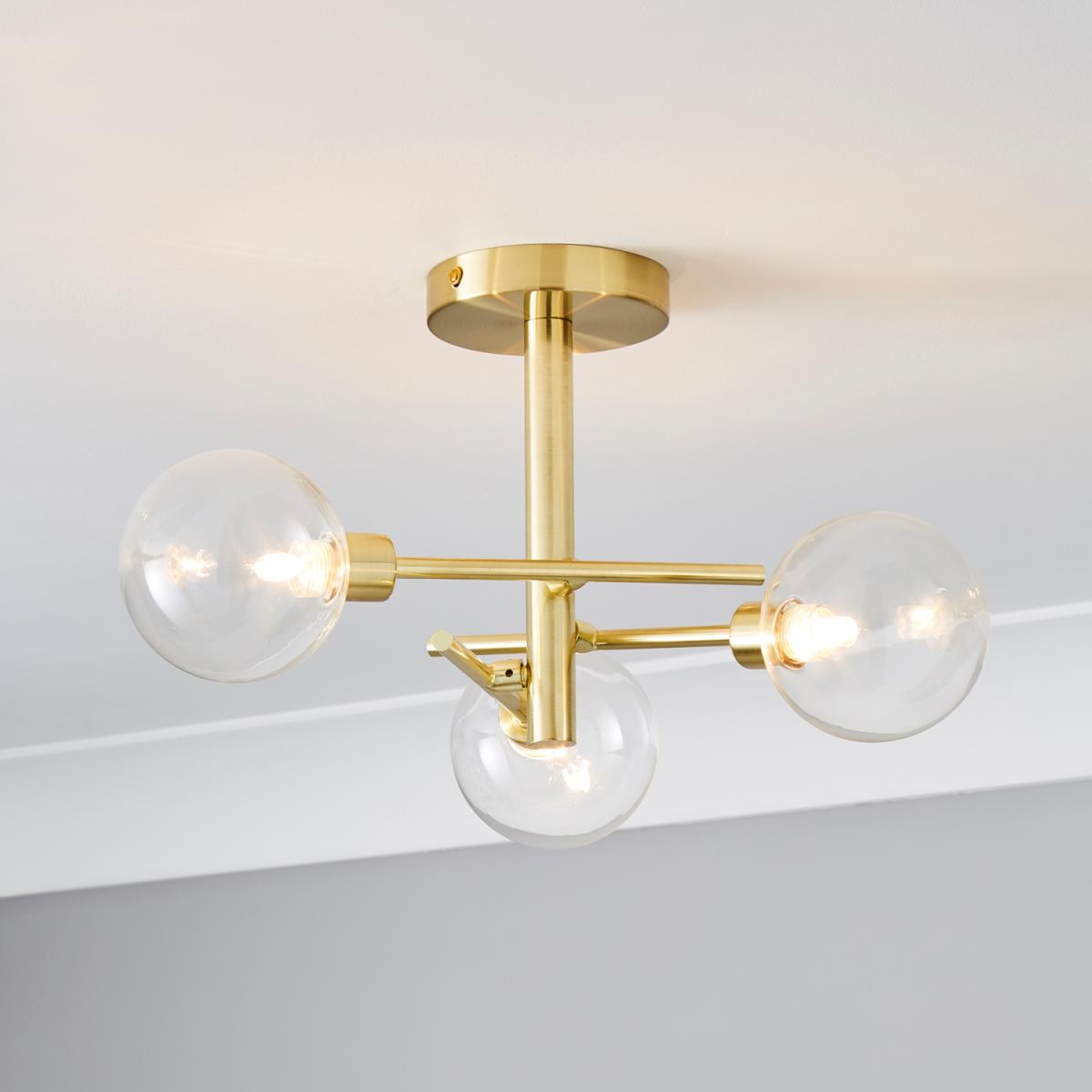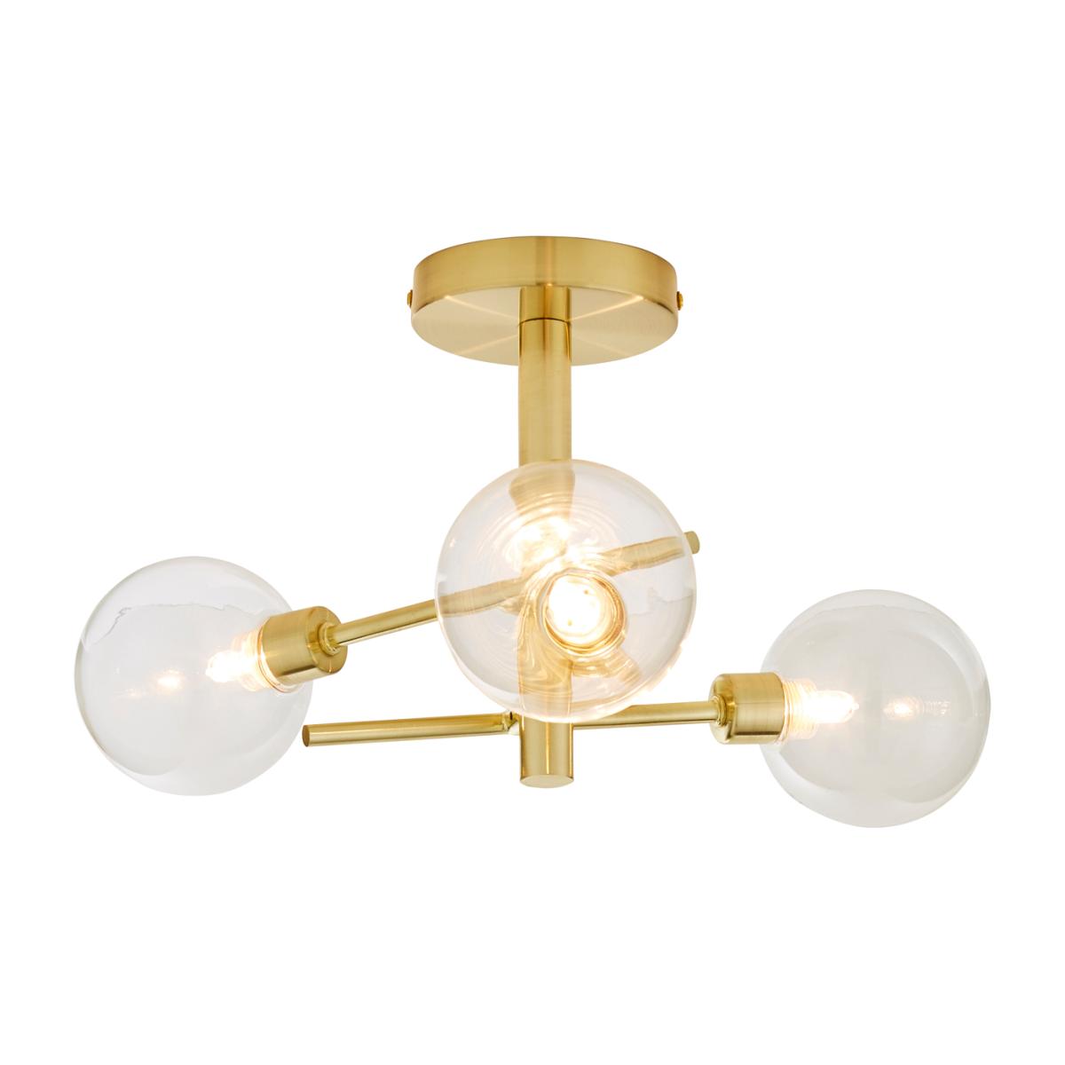 I love this three-light semi-flush fitting for its sleek combination of satin brass finish and clear glass globes, which gives it a contemporary yet timeless appeal. It's versatile enough to work well in living rooms, kitchens, or even bedrooms, especially where a touch of glamour is desired. Practical styling tips include pairing it with modern furnishings for a clean look, or contrasting it with richer textures like velvet or timber for a more eclectic vibe. It’s also ideal for spaces with lower ceilings where a pendant might be overwhelming, bringing good illumination without sacrificing style. Overall, this light offers a refined touch that can elevate a variety of interior schemes.