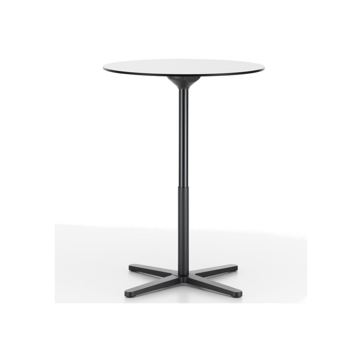 Designed by Jasper Morrison in 2015 and manufactured by Vitra, this high edition of the Super Fold Table has a round, solid core top, crafted from bonded layers of melamine paper, and is recognisable by its folding mechanism, which gives it the ability to fold vertically with a single movement of the hand. The legs of its die-cast aluminium base also rotate to become vertically aligned, increasing the streamlined form of the table when folded. The solid core HPL surface is highly resistant and presents a smooth, black edge and beautifully complements the dark powder-coated column and base. Renowned for his 'super-normal' design style, Jasper Morrison considers good design to be understated, useful and responsible, exemplified by the clean lines of this Super Fold High Table. Perfect for use as a bar table, the Super Fold High Table is a contemporary masterpiece that will endure through the years.