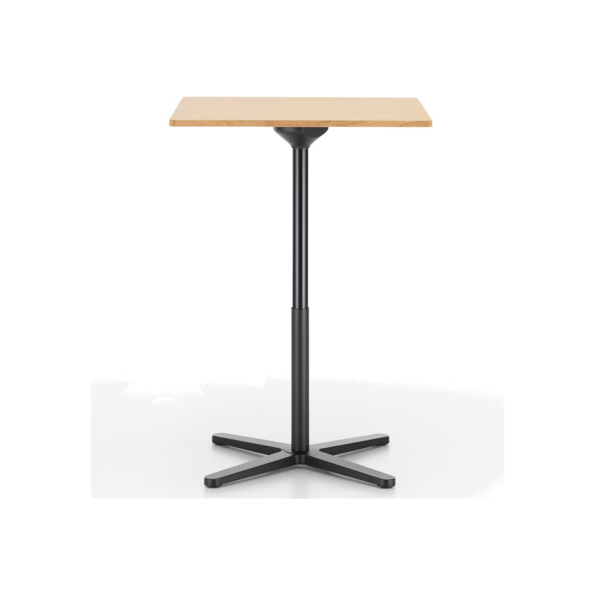 Designed by Jasper Morrison in 2015 and manufactured by Vitra, this high edition of the Super Fold Table has a square oak top and is recognisable by its folding mechanism, which gives it the ability to fold vertically with a single movement of the hand. The legs of its die-cast aluminium base also rotate to become vertically aligned, increasing the streamlined form of the table when folded. The oak surface presents a rich natural grain that beautifully complements the dark powder-coated column and base. Renowned for his 'super-normal' design style, Jasper Morrison considers good design to be understated, useful and responsible, exemplified by the clean lines of this Super Fold High Table. Perfect for use as a bar table, the Super Fold High Table is a contemporary masterpiece that will endure through the years.
