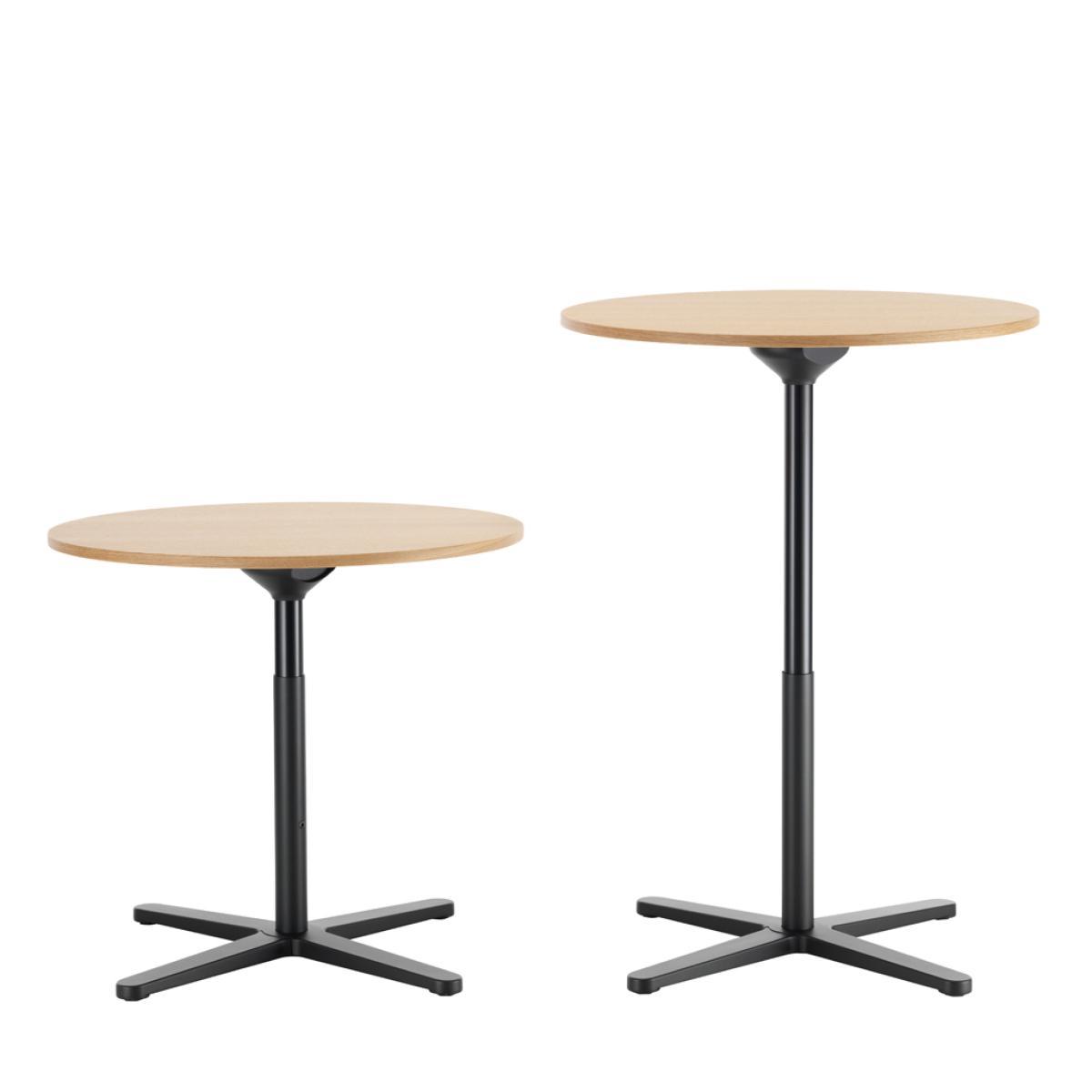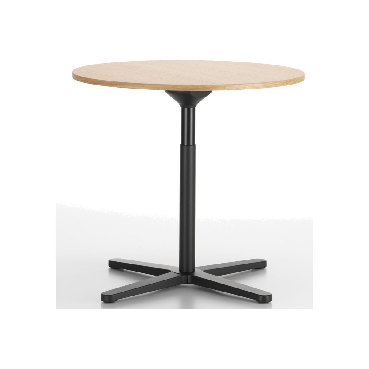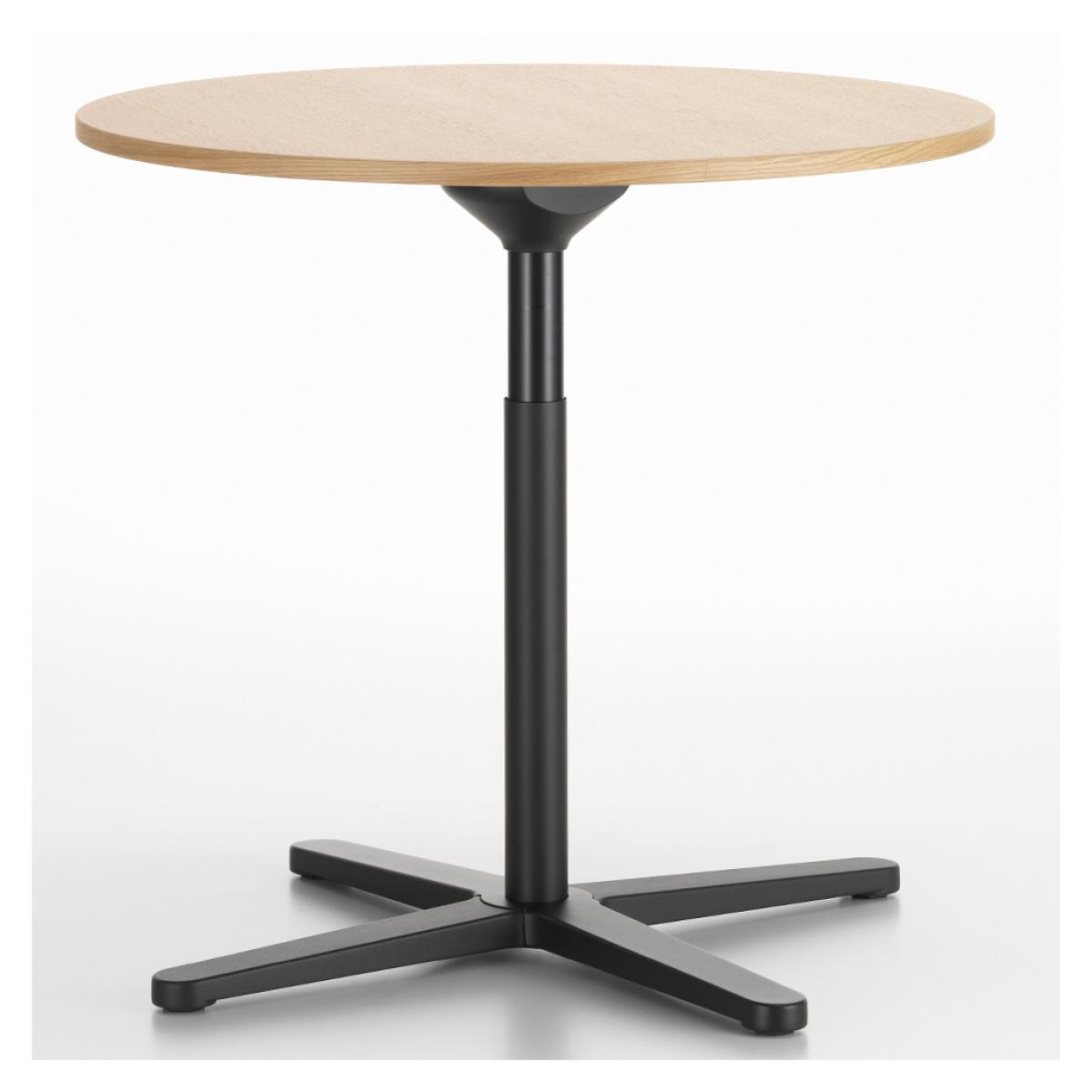 Designed by Jasper Morrison in 2015 and manufactured by Vitra, this round edition of the Super Fold Table is recognisable by its folding mechanism, which gives it the ability to fold vertically with a single movement of the hand. The legs of its die-cast aluminium base also rotate to become vertically aligned, increasing the streamlined form of the table when folded. The oak surface presents a distinctive natural grain that beautifully complements the dark powder-coated column and base. Renowned for his 'super-normal' design style, Jasper Morrison considers good design to be understated, useful and responsible, exemplified by the clean lines of the Super Fold Table in oak. The perfect choice for apartments or rooms with limited space, the adaptable round Super Fold Table is a contemporary masterpiece that will endure through the years.
