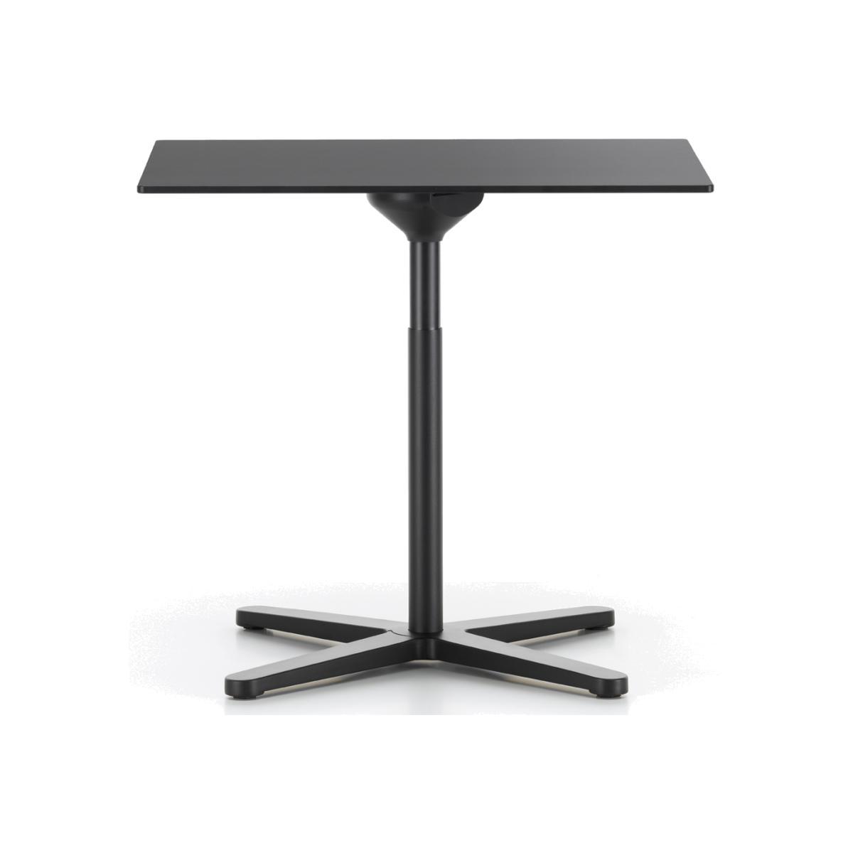 Designed by Jasper Morrison in 2015 and manufactured by Vitra, the Super Fold Table has a round black solid core top, crafted from bonded layers of melamine paper, and is recognisable by its folding mechanism, which gives it the ability to fold vertically with a single movement of the hand. The legs of its die-cast aluminium base also rotate to become vertically aligned, increasing the streamlined form of the table when folded. The black solid core HPL surface is highly resistant and presents a smooth black edge and beautifully complements the dark powder-coated column and base. Renowned for his 'super-normal' design style, Jasper Morrison considers good design to be understated, useful and responsible, exemplified by the clean lines of this Super Fold High Table. The perfect choice for apartments or rooms with limited space, the adaptable round Super Fold High Table is a contemporary masterpiece that will endure through the years.