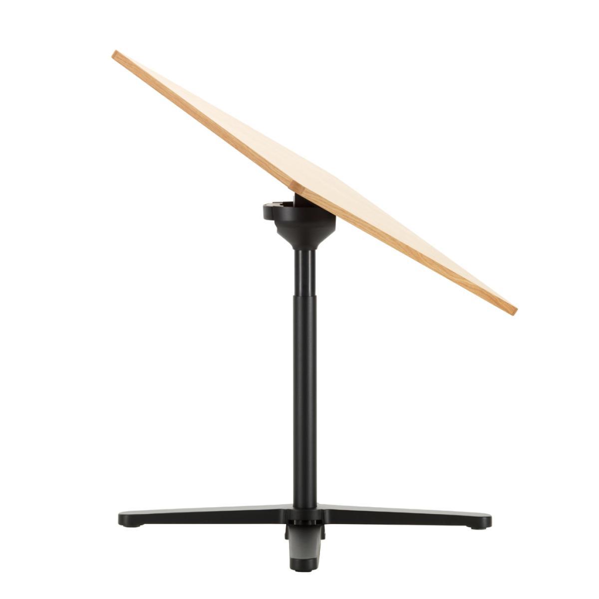 Designed by Jasper Morrison in 2015 and manufactured by Vitra, this square dark oak edition of the Super Fold Table is recognisable by its folding mechanism, which gives it the ability to fold vertically with a single movement of the hand. The legs of its die-cast aluminium base also rotate to become vertically aligned, increasing the streamlined form of the table when folded. The dark oak surface presents a distinctive natural grain that beautifully complements the dark powder-coated column and base. Renowned for his 'super-normal' design style, Jasper Morrison considers good design to be understated, useful and responsible, exemplified by the clean lines of the Super Fold Table in dark oak. The perfect choice for apartments or rooms with limited space, the adaptable Super Fold Table is a contemporary masterpiece that will endure through the years.
