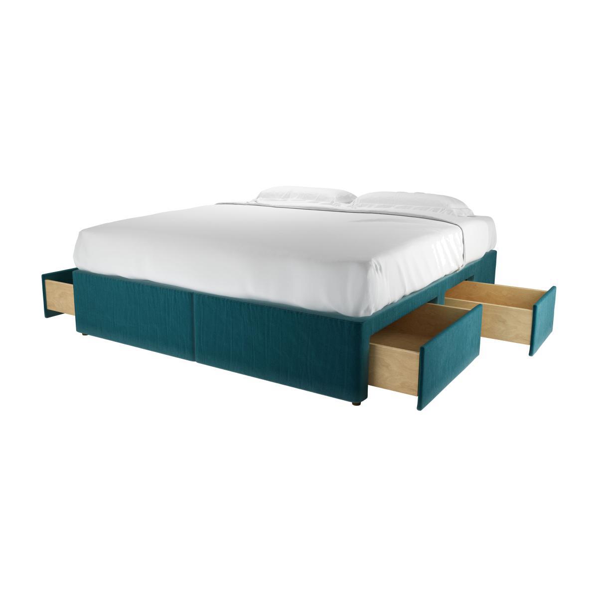 Super King Divan Base in Deep Turquoise Cotton Matt Velvet - sofa.com