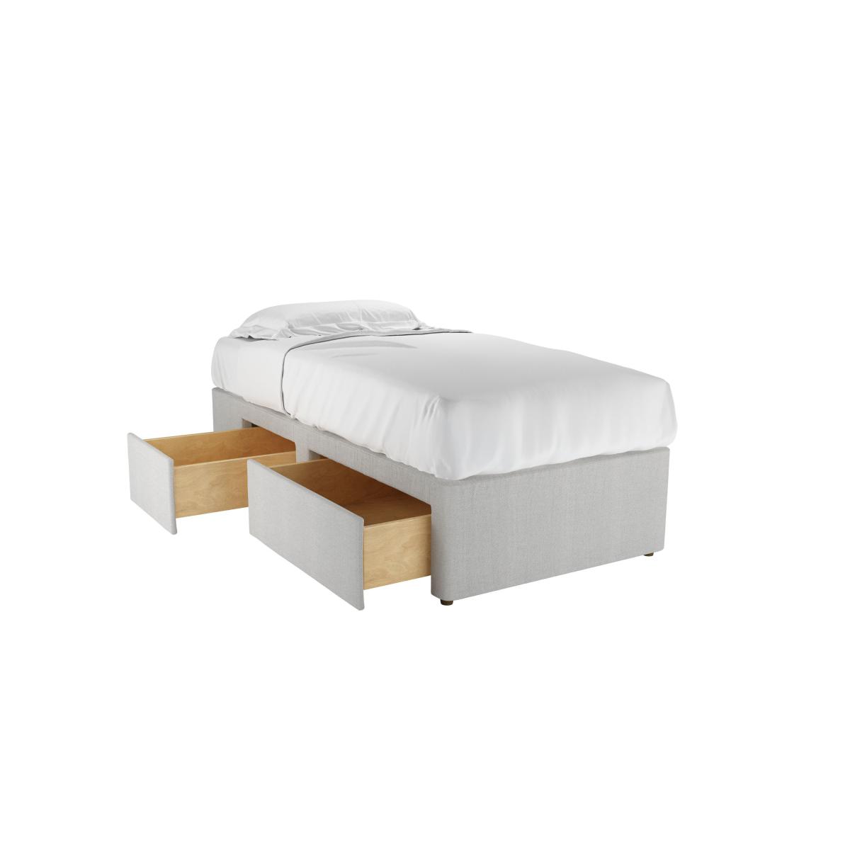 I love this divan base for its clean, understated look and versatile taupe brushed linen finish, which easily pairs with a range of colour schemes and styles. It’s ideal in both modern and more relaxed, cosy interiors, thanks to its neutral tone and textured fabric. The drawers are practical for storing bedding or spare linens, making it a smart space-saving choice. For styling, consider layering with crisp white or pastel bedding for a fresh look, or add textured cushions to bring in some visual interest. It works particularly well in bedrooms aiming for a minimal, contemporary feel but can also lend itself to a Scandinavian or boutique hotel vibe when paired with sleek bedding and simple accessories.