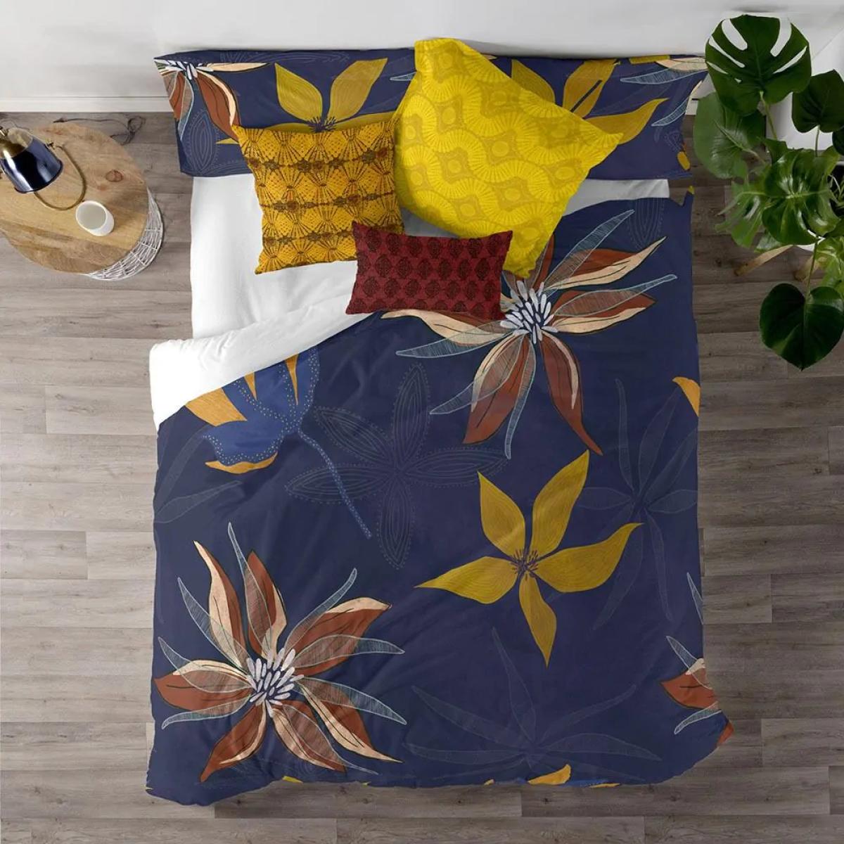 This super king duvet set is perfect for any bedroom space looking for bold colours and statement pattern, as the combination of reds, yellows, and blues add a vibrant edge to this floral-inspired print. The deep colours bring a richer tone to your bedroom, with the super king size duvet cover and matching print pillowcases creating a consistent theme. The set is 100% cotton and has a 150 thread count that gives a comfier feel to your bed, which is ideal for helping you to unwind and drift off to sleep at night.