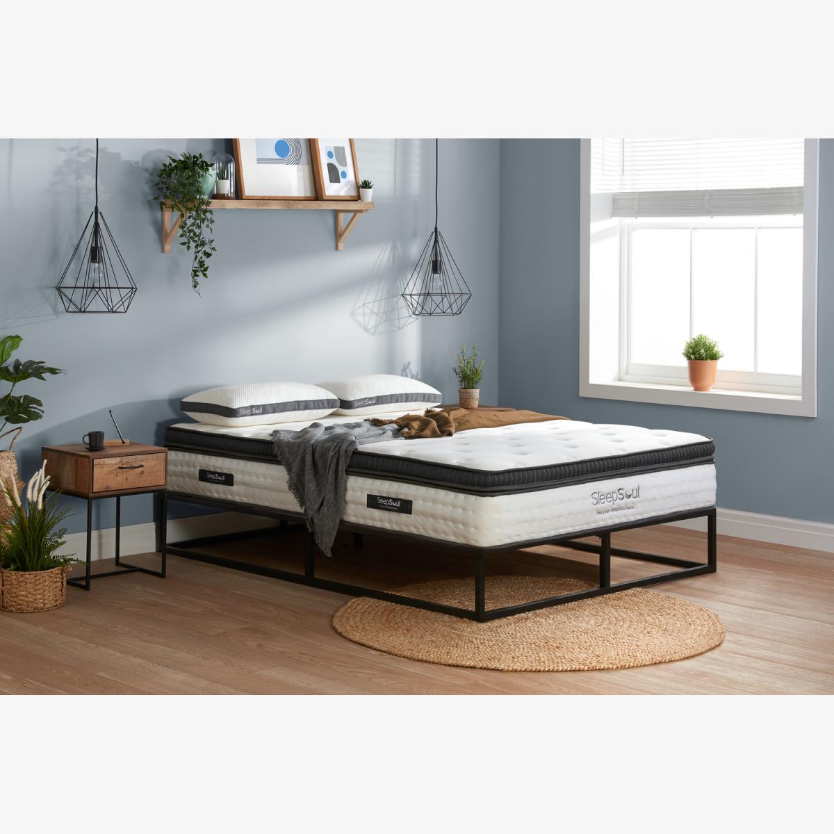 We like to push the boundaries of what's possible. That's why we challenged ourselves to see just how comfortable a mattress could be. Introducing the Serenity mattress, featuring four layers of sumptuous foam and a pillow-top layer of plush fillings. It has to be felt to be believed. Engineered for comfort, the four layers of foam are more than just soft. Two layers of convoluted foam provide advanced airflow to avoid the buildup of heat, keeping you cool throughout the night. They also relieve pressure off your joints and muscles, helping to keep your body healthy for the day tomorrow. The memory foam acts as a transition layer for the perfect sink and minimised movement. Perfect for sleeping in any position, you'll stay comfortable and supported as you drift off into dreamland. Plus, 1000 individual edge-to-edge pocket springs support your body throughout the night. You'll stay stable and supported with Serenity, avoiding the dreaded roll-together' effect. Whether you sleep alone or with a partner, you'll enjoy a peaceful night's sleep without rolling across or off the bed. The Serenity mattress is vacuum sealed and packed into a box for freshness and convenience. Just release from the box, remove the inner plastic wrap and your new mattress will start to take shape. In 2 hours, it will be good in 24 hours, it will be great. Each Sleep Soul pocket-sprung hybrid mattress comes with a 10-year warranty as standard, so you can enjoy a decade of comfort.
