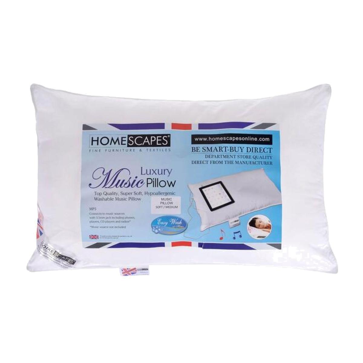 Homescapes are well known manufacturer and brand of top quality pillows, duvets and mattress toppers. They have been constantly requested by customers to provide with a good music pillow. Music pillows available in the market were neither comfortable to sleep on nor washable and produced with a low specification of fabric and fillings. Another problem was that all these pillows were not graded for their firmness, so customers were not able to choose a suitable pillow. So Homescapes has come with a solution and designed and manufactured washable music pillows in soft and medium firm ratings. Homescapes Music pillow provide total comfort and being fully washable they are also very healthy pillows. In addition to being excellent pillows, they also provide good quality sound from a high grade installed removable speaker. Homescapes are known for their innovation and for bringing department store quality direct from the manufacturer and this is yet another quality product from them.