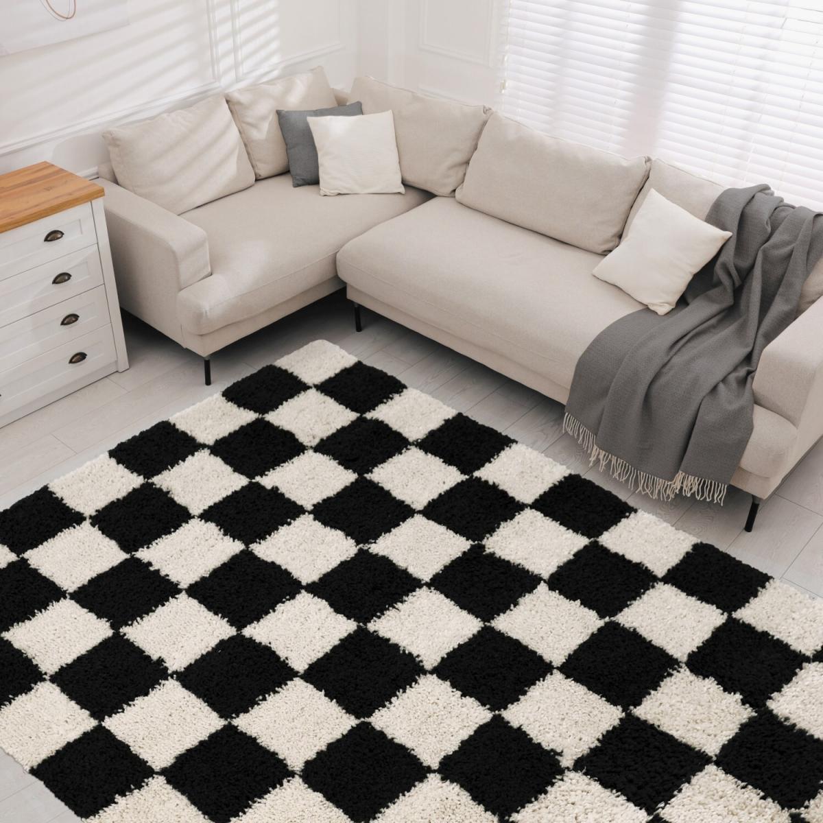 Super Soft Cosy Chequer Board Area Rug - Mono / 160x230cm