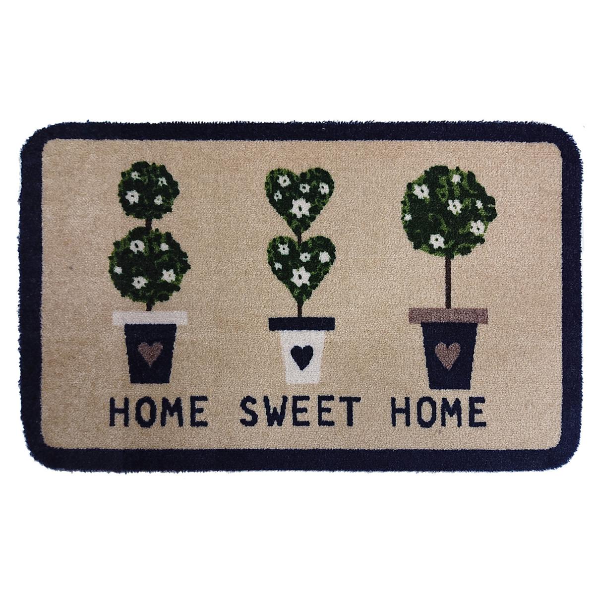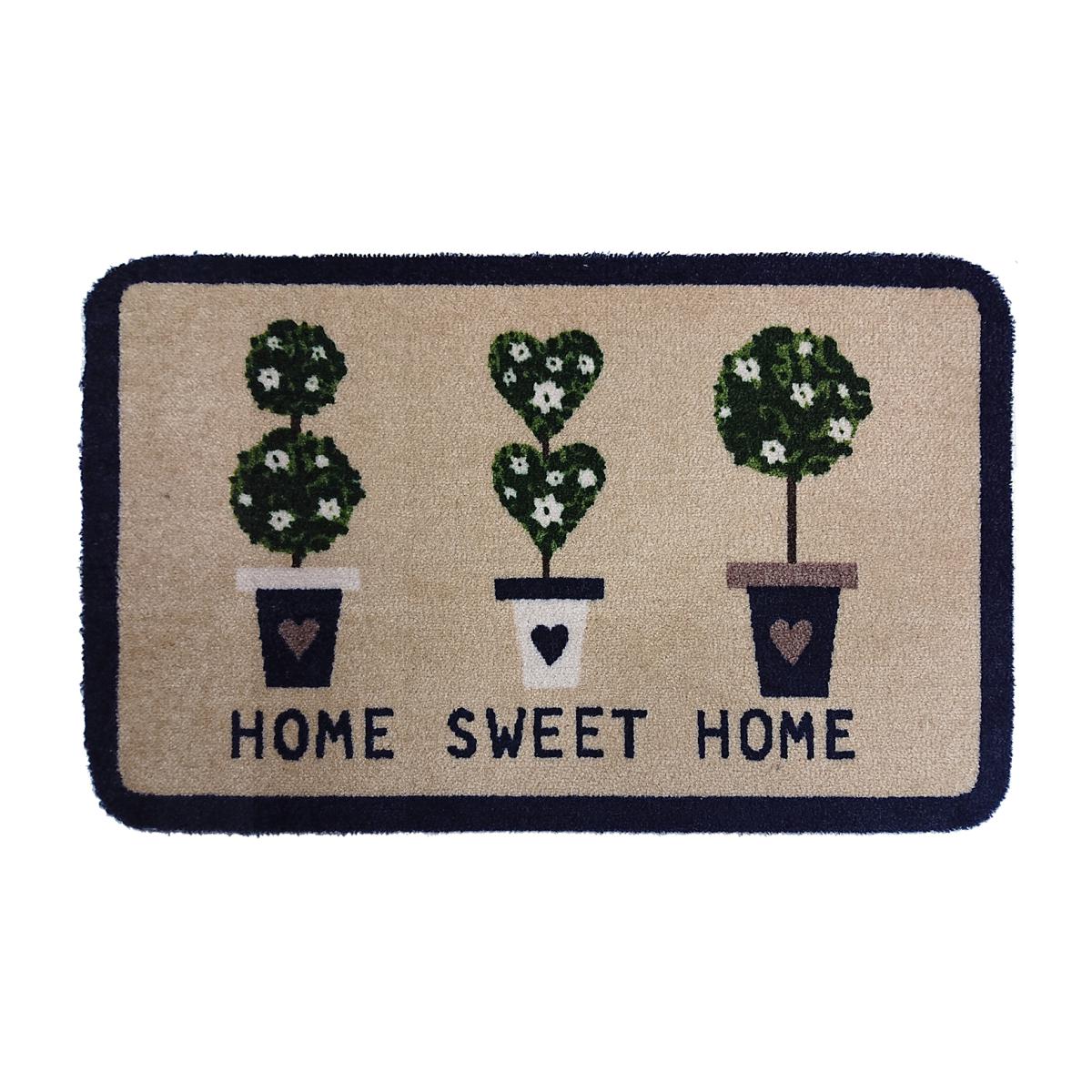 Printed with a charming topiary design and 'home sweet home' text, this Super Soft Mat is a practical and adorable accessory for placing by your door to help keep your home clean. Featuring an anti-slip backing, this mat traps dirt, dust, moisture, and mud and is machine washable for added convenience.