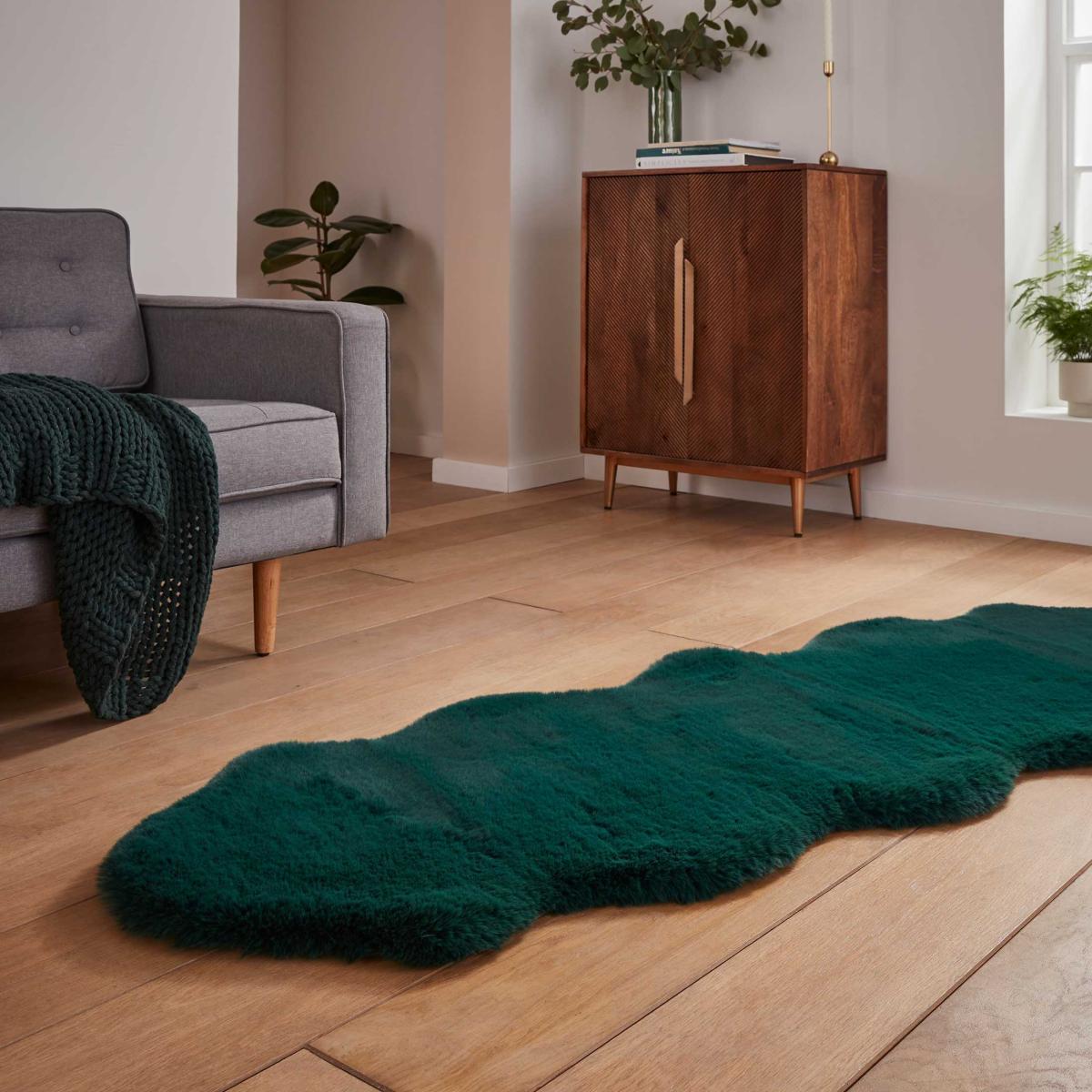 I love this green sheepskin rug for its bold yet versatile colour, which can bring a fresh touch to both modern and eclectic interiors. It works particularly well in neutral or earthy colour schemes, providing a cosy and inviting layer to living rooms or bedrooms. When styling, consider pairing it with natural wooden furniture and soft textiles to create a layered, tactile look. Practical tips include placing it near seating areas to add warmth and comfort, or layering it with smaller rugs for a curated, relaxed feel. Its organic shape and lush texture make it a subtle statement piece that elevates the overall aesthetic without overwhelming the space.