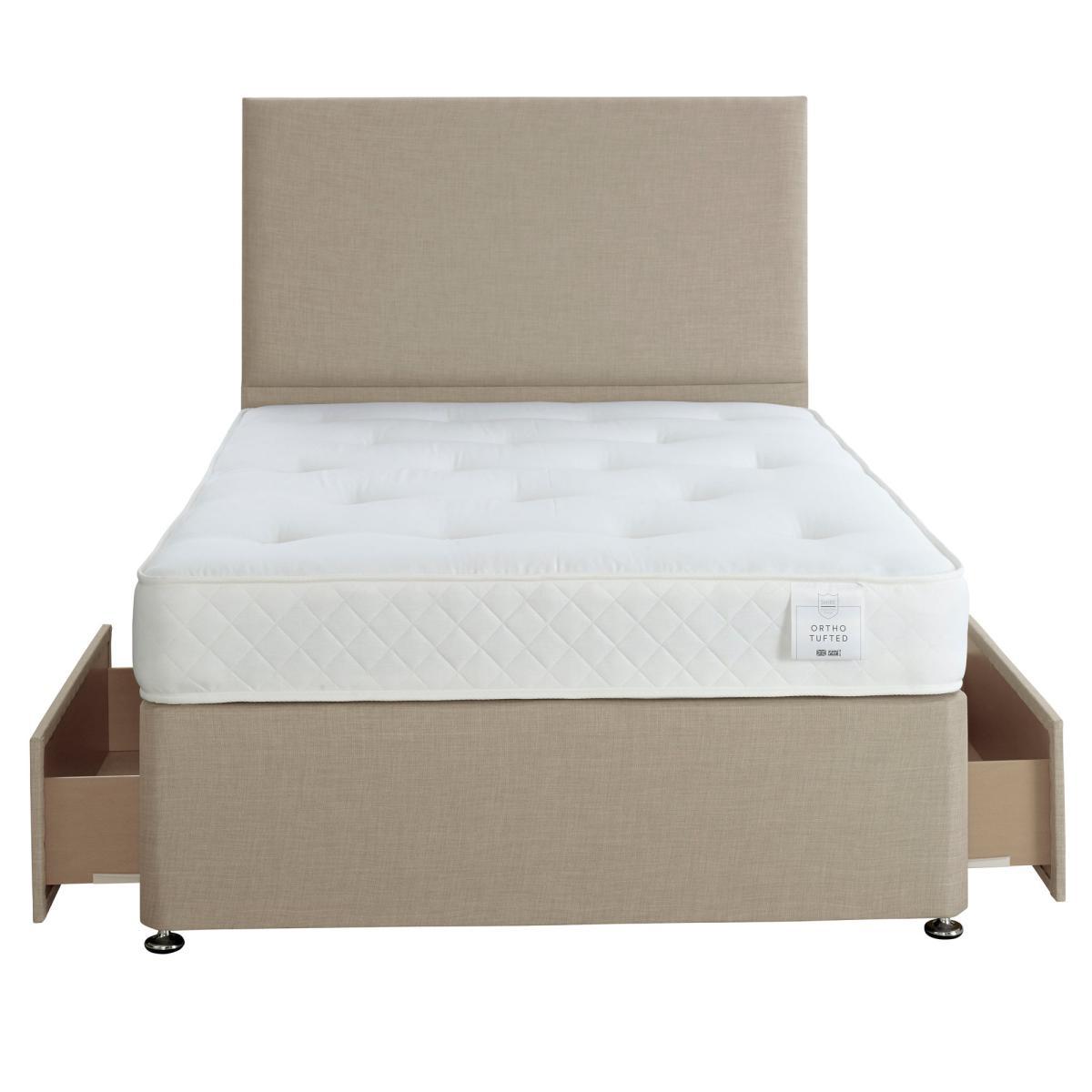 Perfect for adding a comfortable and practical touch to your bedroom, this divan bed, headboard, and mattress set has everything you need for a good night's sleep. This divan bed features 2 drawers with ample storage space for bedding, shoes, clothes, and more. The open coil mattress includes a medium to firm support, micro paneled, and quilted tufted top and is perfect for all sleepers.