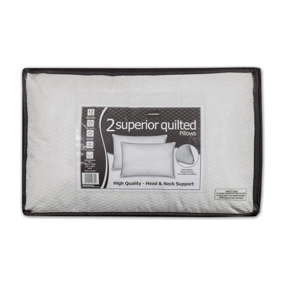 This non allergenic Superior Quilted Pillow features high-quality striped piping and is super soft to the touch. Offering soft to medium firmness, the superbounce fibre filling comfortably supports your head whilst you sleep and ensures this pillow retains its plump shape.