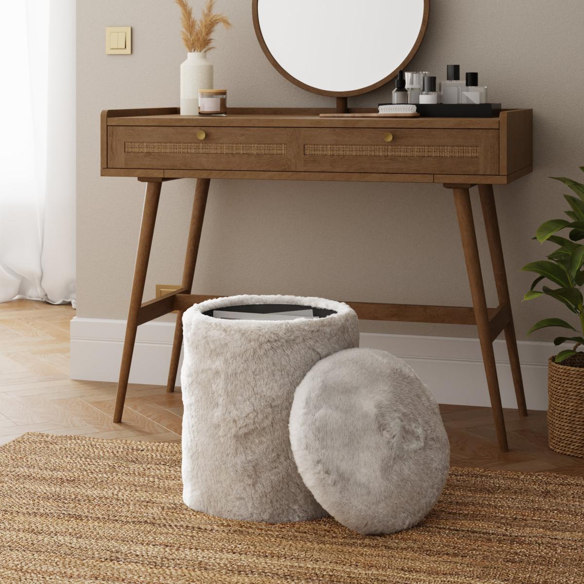 I love this faux fur footstool for its cosy, inviting texture, making it a perfect addition to living rooms or bedrooms aiming for a relaxed, plush vibe. Its soft Mink finish adds a touch of luxe without a hefty price tag, and it works particularly well in contemporary, Scandi, or eclectic interiors. For styling tips, try pairing it with a neutral palette to highlight the texture, or add a colourful throw or cushion for contrast. It’s versatile enough to serve as a footrest, extra seating, or even a small side table when topped with a tray. Because it’s soft and lightweight, it’s easy to move around and adapt to different zones within your space.