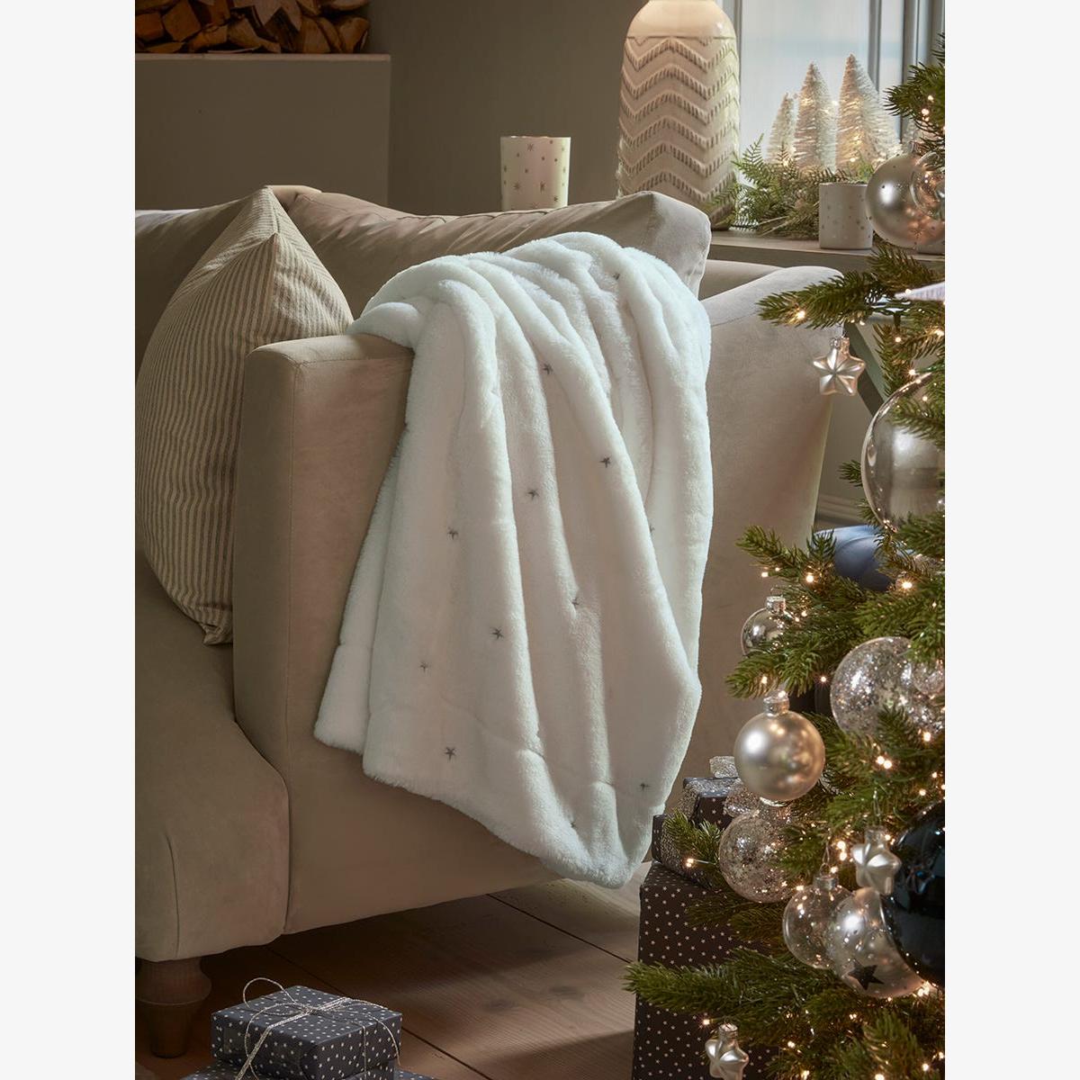 Cosy up on a crisp winter morning with our supersoft mini stars throw. Made from faux fur, this throw has a lovely silver toned star pattern on a neutral background. Subtle and intricate, this delicate pattern would blend into any setting seamlessly. As part of our Midnight Stars collection, this throw has a matching tree skirt.
