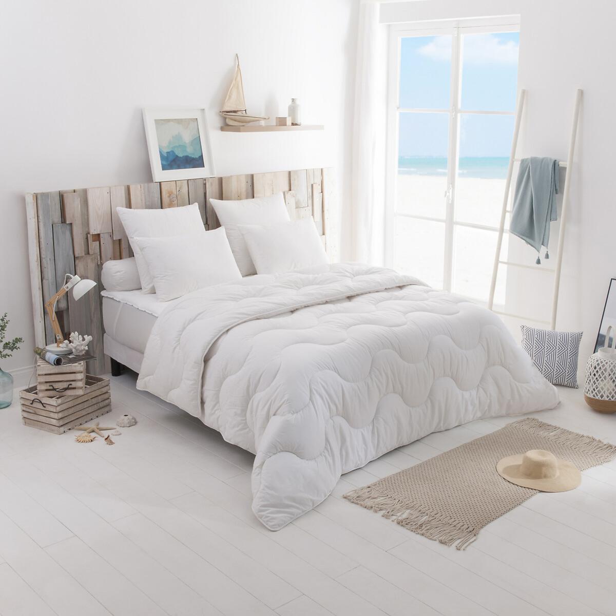 The Dodo Suprelle Blue Duvet: an incredibly soft, plush and breathable lightweight duvet. Its Eco-Responsible filling benefits from a superior inflator made from recycled plastic collected by Plastic Bank to fight against ocean waste. Product Details. 200 g/m2 : lightweight duvet, ideal for rooms of 22°C temperature and higher. Cover: 100% polyester, GRS certified. Padding: 100% polyester SUPRELLE BLUE - GRS certified silicone hollow fibre. Stitching: waves. Washable at 40°C. Supplied in a zipped PEVA cubic cover with handle. Additional information:. This product labelled STANDARD 100 by OEKO-TEX® - certificate no. CQ 1102/4 IFTH follows a certified and controlled manufacturing process which is respectful of your skin. The STANDARD 100 by OEKO-TEX® is the first label that meets the needs of consumers in terms of human ecology. It guarantees the absence, in certified articles, of substances that are harmful or may present a risk to health Additional information. Suprelle Blue is a European Ecolabel of ecological quality.