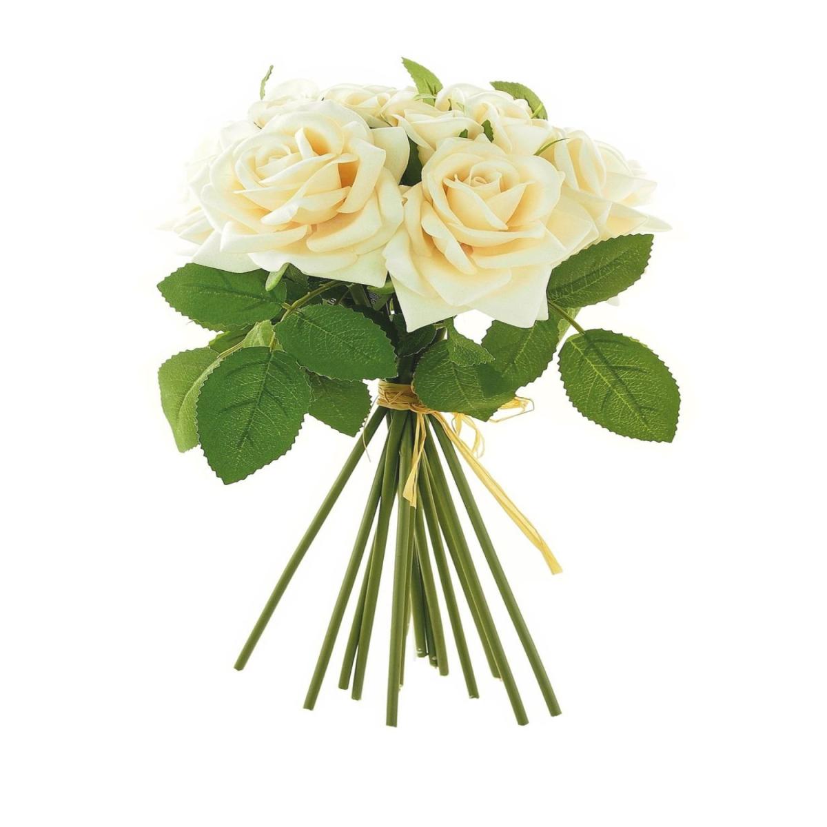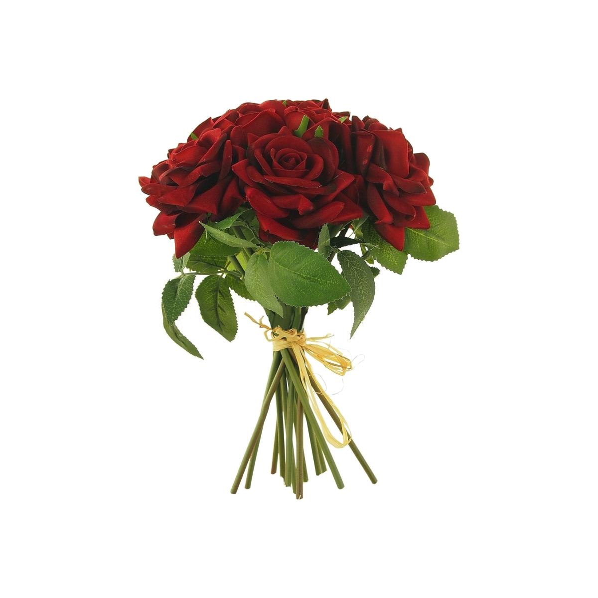 Brighten up your home or add classic decoration to special events with this beautiful Open Bud Rose bouquet. Perfect for displaying in a vase or arranging with other flowers, these artificial roses have rich colour and detailed green leaves.