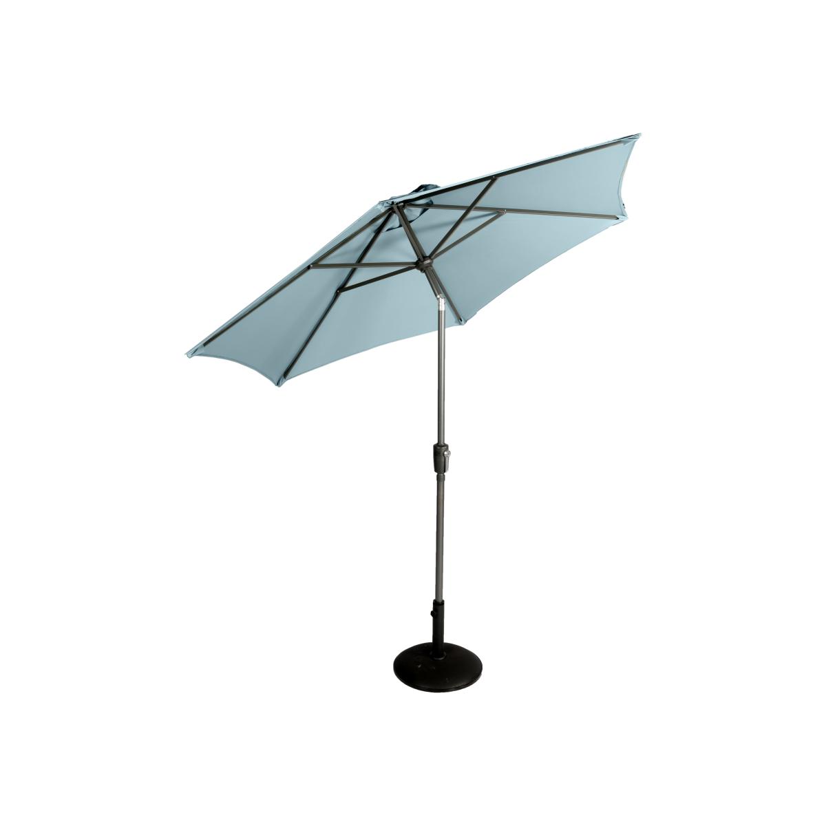 The Supremo Riviera 3m Parasol in Duck Egg Blue is a classic shape parasol, with crank and tilt functionality.  Perfect for getting shade just where you want it, this parasol can easily be positioned to suit you and your guests which makes it great for entertaining in the shade during those warmer summer days. Please note, the parasol base pictured is not included but is available to purchase separately here.  KEY FEATURES: Two piece 35mm pole design for easy storage Crank and tilt function. All-weather canopy ensures this parasol will last for many years to come. Available in a variety of colours Diameter: 3m Frame:Aluminium Colour: Duck Egg Blue 1 Year Warranty Please note, all screens vary in colour reproduction and whilst every effort has been made to display the colour as accurately as possible it is for guidance only.