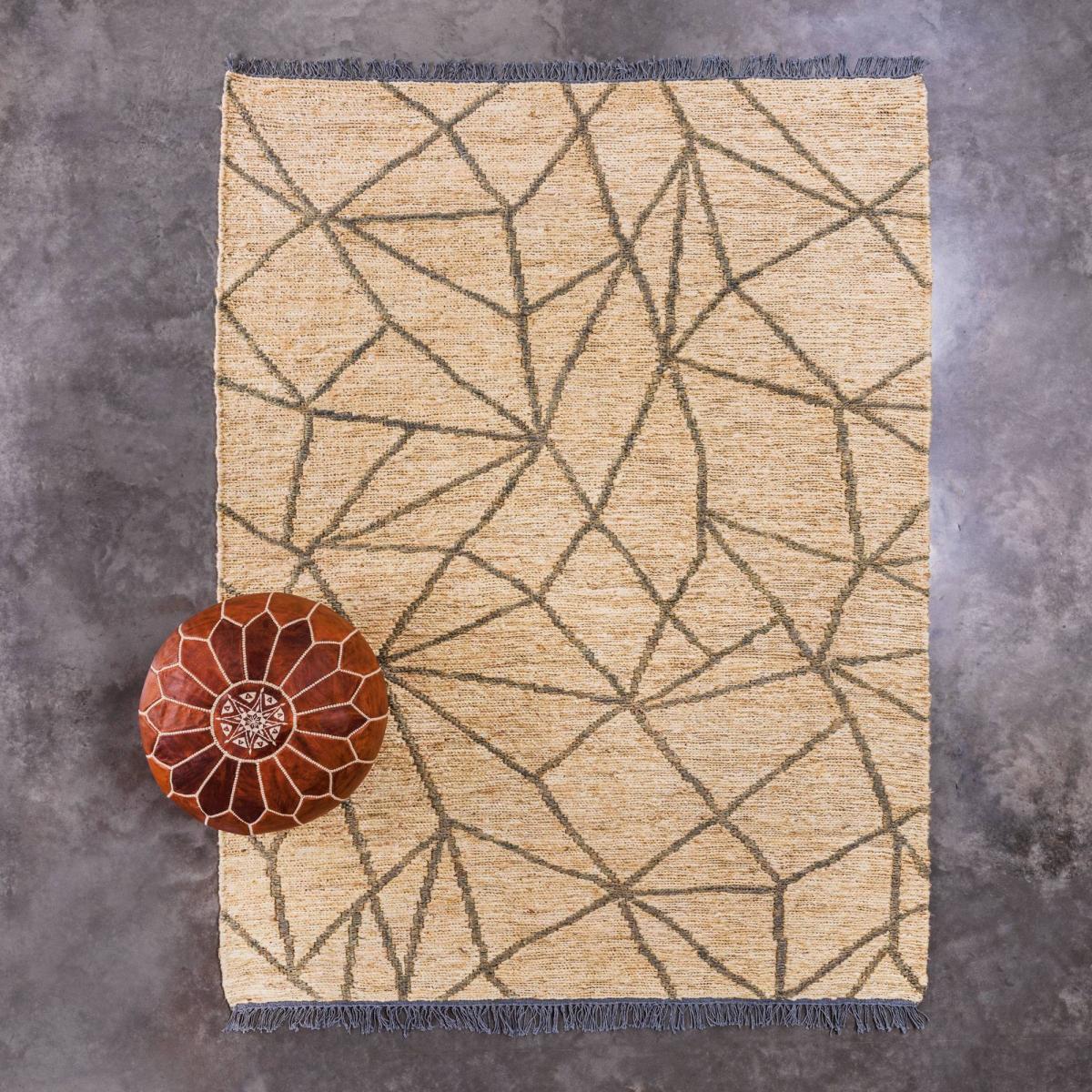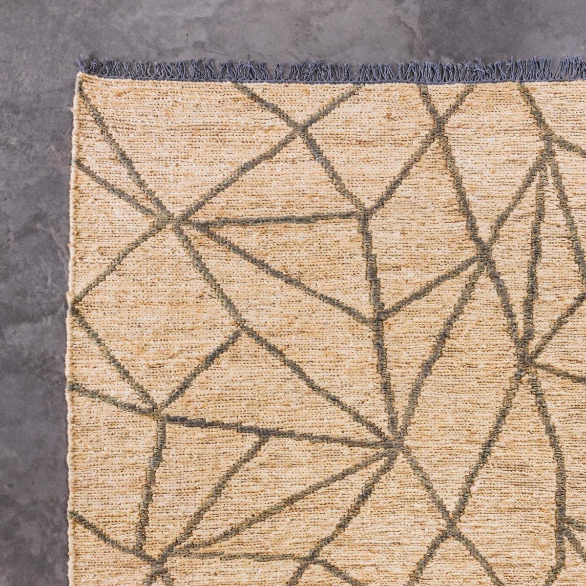 This natural jute rug is perfect for adding a touch of bohemian style to your home, featuring a grey geometric design it's perfect for adding layers of texture to your home.
