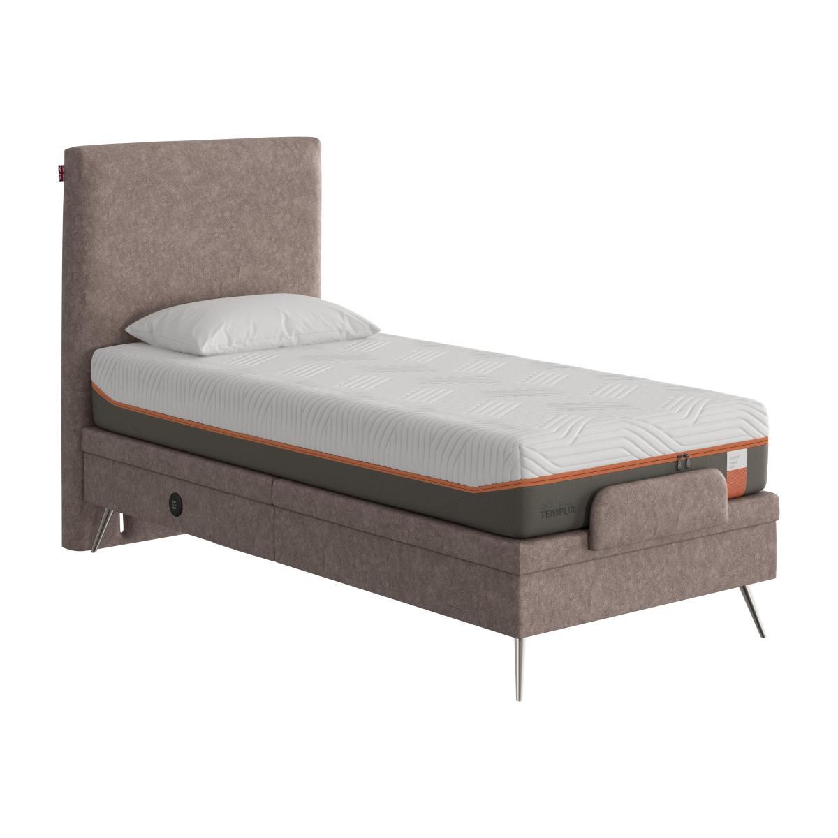 The contemporary Surface bed is a far cry from traditional adjustable beds. Set on cool angled legs and with neatly tailored upholstery, this fabulous bed frame combines high style with exceptional adjustability. Why you'll love it. Beautiful adjustable bed combines well-crafted luxury with designer flair. Contemporary style. Robust and sturdy. Wireless remote-control operation for easy multi-position adjustability. Fashionable stiletto legs with a metallic finish. Integrated USB port for easy charging of phones and tablets. Available in standard bed sizes from small single to super king. Made in Britain. What you need to know. Headboard shown is available separately. Mattress not included. Clean weekly using a soft brush or vacuum with the curtain attachment. Professional cleaning advised for oil- and grease-based stains. Some fabrics can show wear on areas of more use or in direct sunlight. Do not sit on the bed with the foot in the raised position.