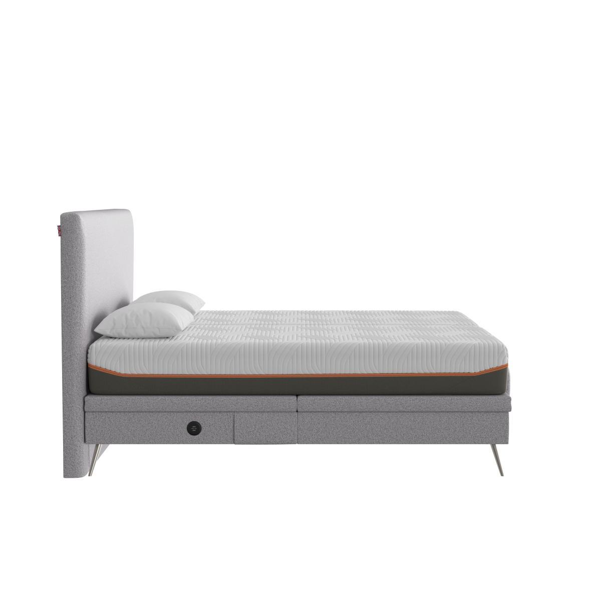 The contemporary Surface bed is a far cry from traditional adjustable beds. Set on cool angled legs and with neatly tailored upholstery, this fabulous bed frame combines high style with exceptional adjustability. Why you'll love it. Beautiful adjustable bed combines well-crafted luxury with designer flair. Contemporary style. Robust and sturdy. Wireless remote-control operation for easy multi-position adjustability. Fashionable stiletto legs with a metallic finish. Integrated USB port for easy charging of phones and tablets. Available in standard bed sizes from small single to super king. Made in Britain. What you need to know. Headboard shown is available separately. Mattress not included. Clean weekly using a soft brush or vacuum with the curtain attachment. Professional cleaning advised for oil- and grease-based stains. Some fabrics can show wear on areas of more use or in direct sunlight. Do not sit on the bed with the foot in the raised position.