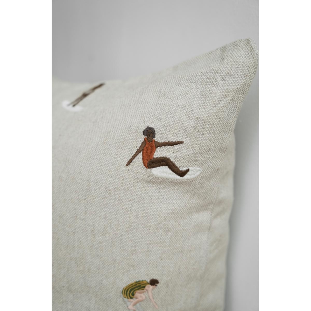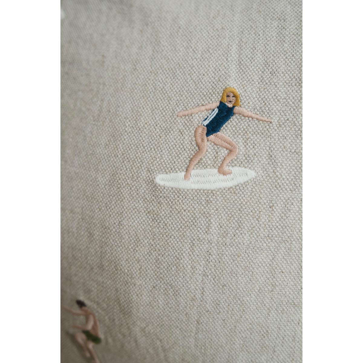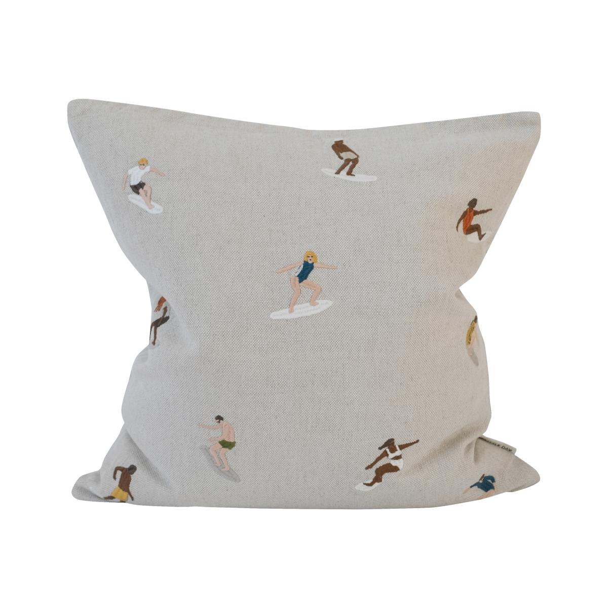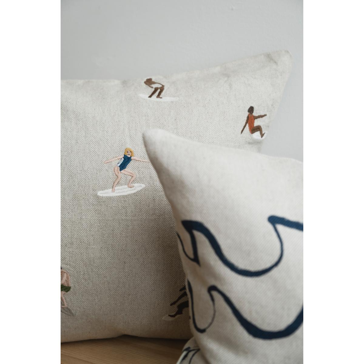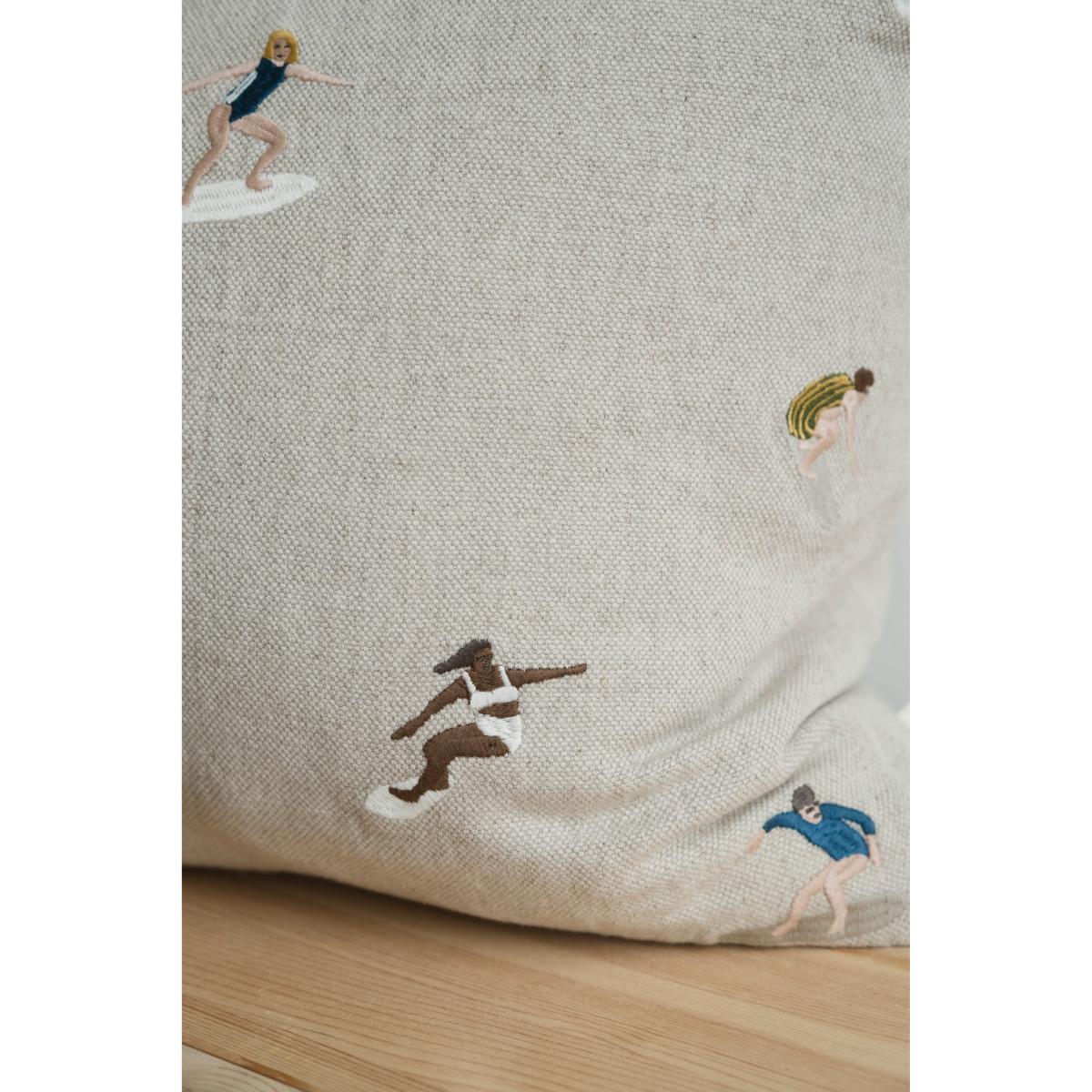 Surfer's cushion cover 48x48 cm from Swedish Fine Little Day is made of soft strong unbleached linen canvas with an embroidered design depicting people surfing. The cushion cover is designed by Elisabeth Dunker and is guaranteed to be a lovely addition to your other cushions on the sofa.