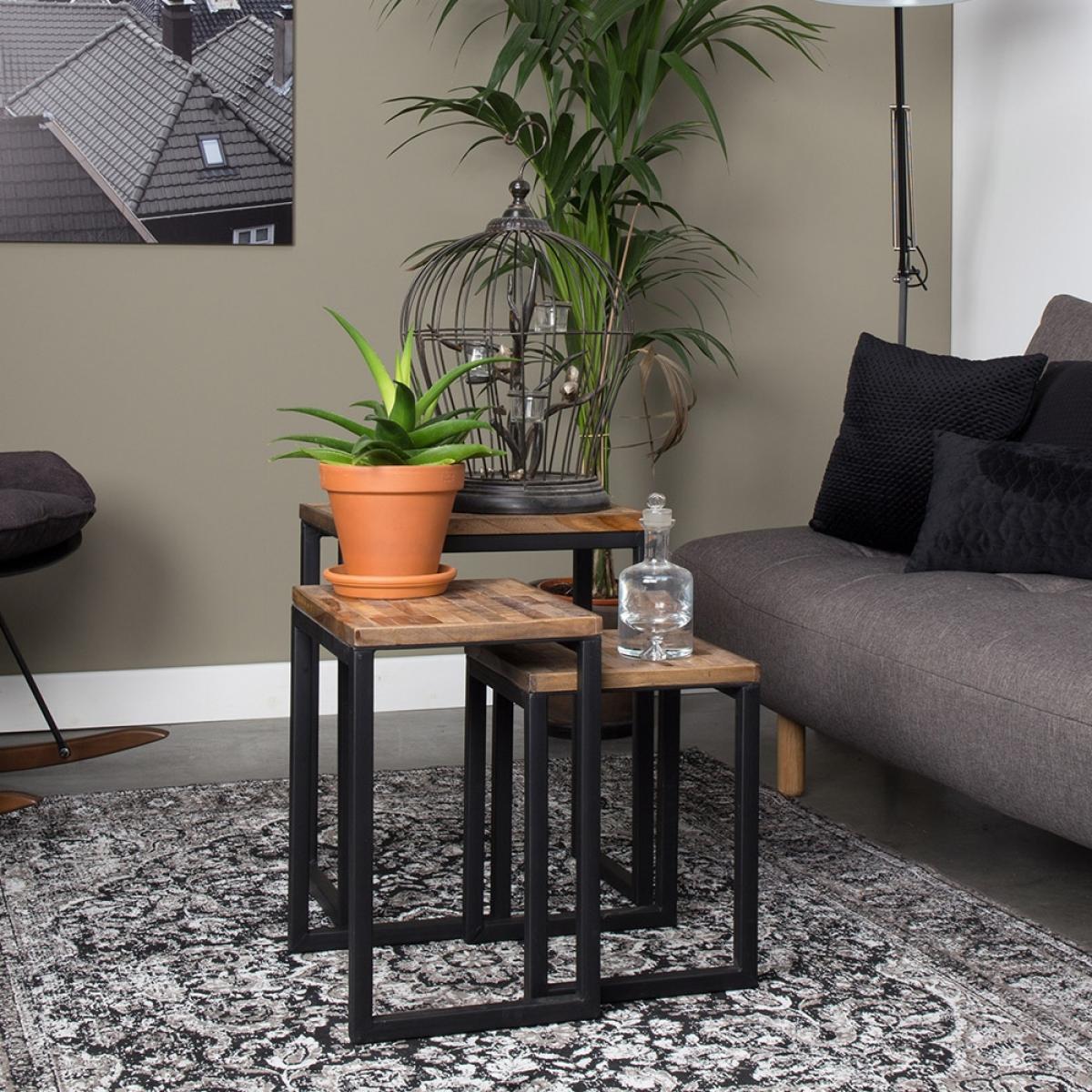 All good things come in three's, right?! Well, the Suri Recycled Teak Nest of Tables is no exception! Keep them all together or have them scattered around the house, wherever you place them they will make a handy addition. The recycled teak table tops and antique finish of the frame give these table a stunning rustic look. Whether you place them next to your favourite reading chair, for somewhere to pop that cuppa, or by the sofa, to keep that cheeky glass of wine safe these three little tables have got your covered!.