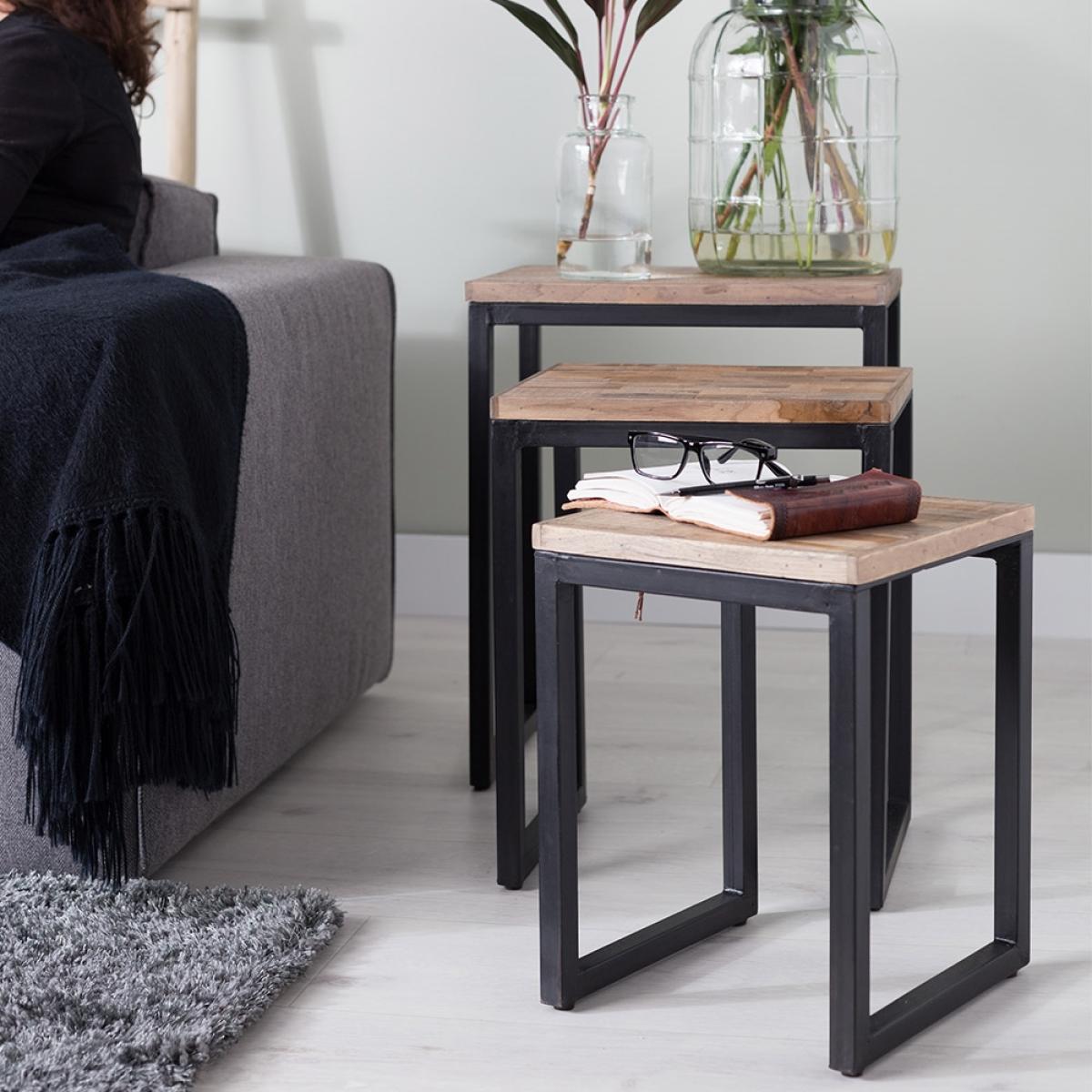 I really like this set of nest of tables because they combine eco-friendly recycled teak with a sleek black metal frame, creating a versatile look that can suit both contemporary and rustic interiors. They’re practical as side tables, perfect for stacking books, display vases, or a cup of tea without taking up too much space. I recommend placing them in a living room corner or beside a sofa, where they can be easily pulled out for extra surface area when needed. Styling tips include layering with textured accessories like woven baskets or ceramic pieces to add warmth, or keeping it minimal for a clean, modern vibe. Their compact design makes them a flexible choice that can be moved around easily to suit your needs.