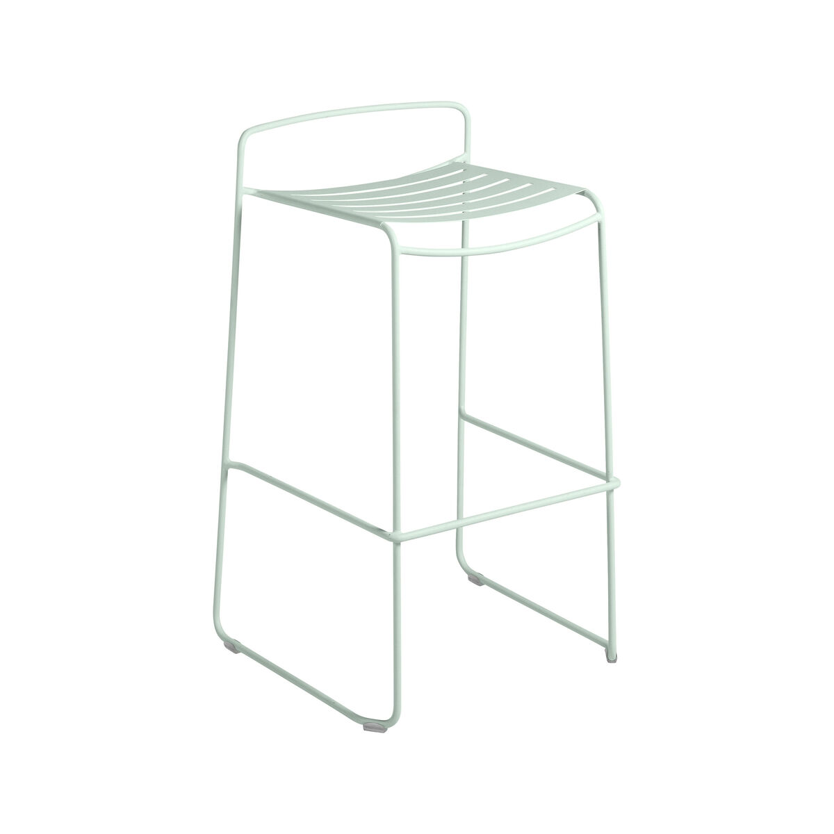A simple, essential line for very contemporary elegance. Surprising is a collection full of simplicity, elegance and finesse. This bar stool offers aesthetic consistency between the fineness of the wire structure and the extreme finesse of the seat. The steel wire work which draws the silhouette in one piece, gives the range all its lightness. This design uses minimal material to obtain an overall airy volume. The seat consists of thin curved, enveloping slats of sheet steel. The sled base is characteristic of the Surprising collection.