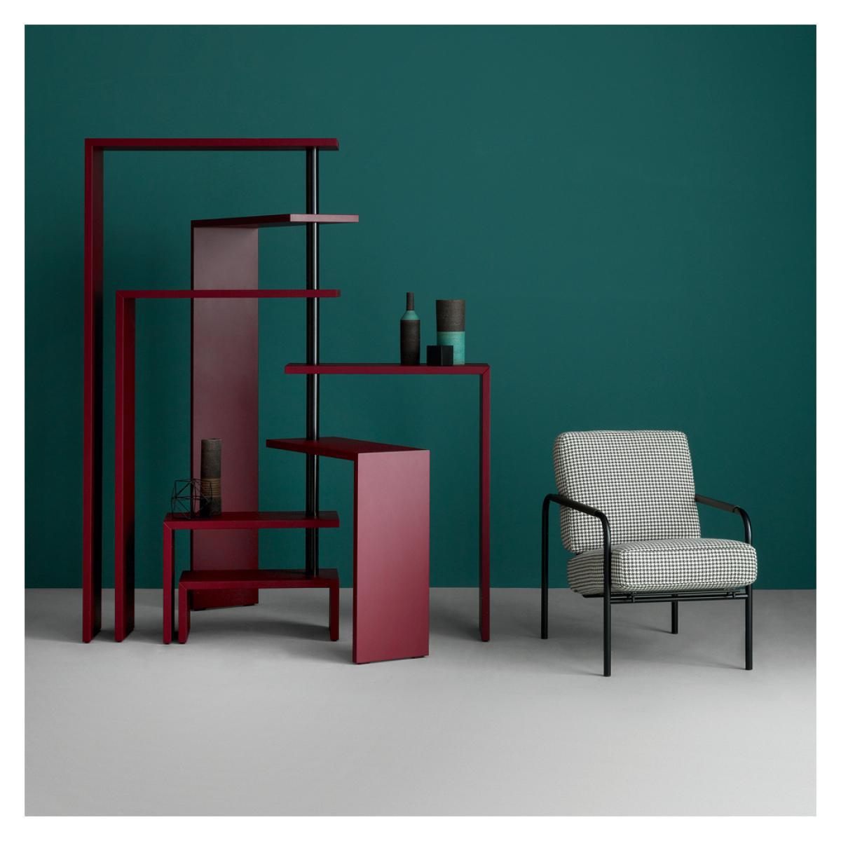 Designed by Gabriele Mucchi in 1983, the Susanna Armchair has been manufactured to exacting standards by Zanotta and is made up of fabric-upholstered cushioning suspended on a black painted steel frame with leather armrests. Upholstered in Zanotta's 'pied de poule' houndstooth fabric in dark grey, the soft textile is a rich cotton, viscose and flax blend. The Susanna Armchair's cushions are deeply padded and wide for a comfortable sitting experience. The cushions are also adjustable, with two possible positions allowing the sitter to customise the chair to their preferences. Reminiscent of the clean-lined Bauhaus aesthetic, the Susanna Armchair has a modern black-painted tubular frame with leather armrests for comfort, which stands out beautifully against the classic houndstooth textile. An enduring classic of contemporary chair design, the Susanna Armchair from Zanotta would make a distinguished addition to your living space.