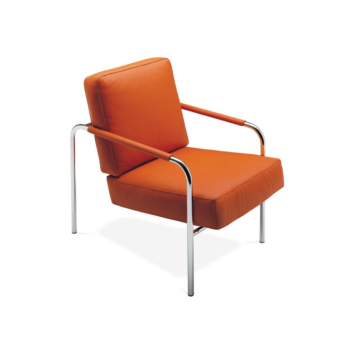 Designed by Gabriele Mucchi in 1983, the Susanna Armchair has been manufactured to exacting standards by Zanotta and is made up of orange leather-upholstered cushioning suspended on a clean steel frame. Upholstered in full-grained, dark orange-hued Pelle Nappa leather with a natural feel, the Susanna Armchair’s cushions are deeply padded and wide for a comfortable sitting experience. The cushions are also adjustable, with two possible positions allowing the sitter to customise the chair to their preferences. Reminiscent of the clean-lined Bauhaus aesthetic, the Susanna Armchair has a chromium-plated steel tubular frame that stands out against the plush dark orange leather. An enduring classic of contemporary chair design, the Susanna Armchair from Zanotta would make a distinguished addition to your living space.