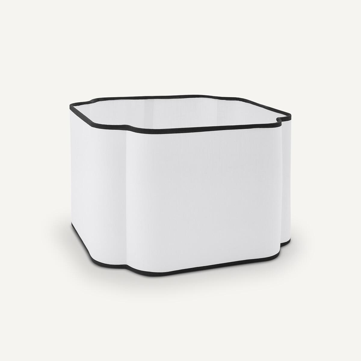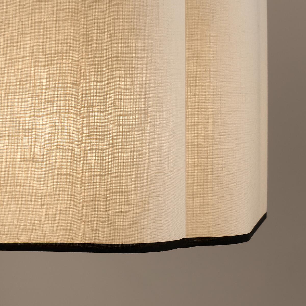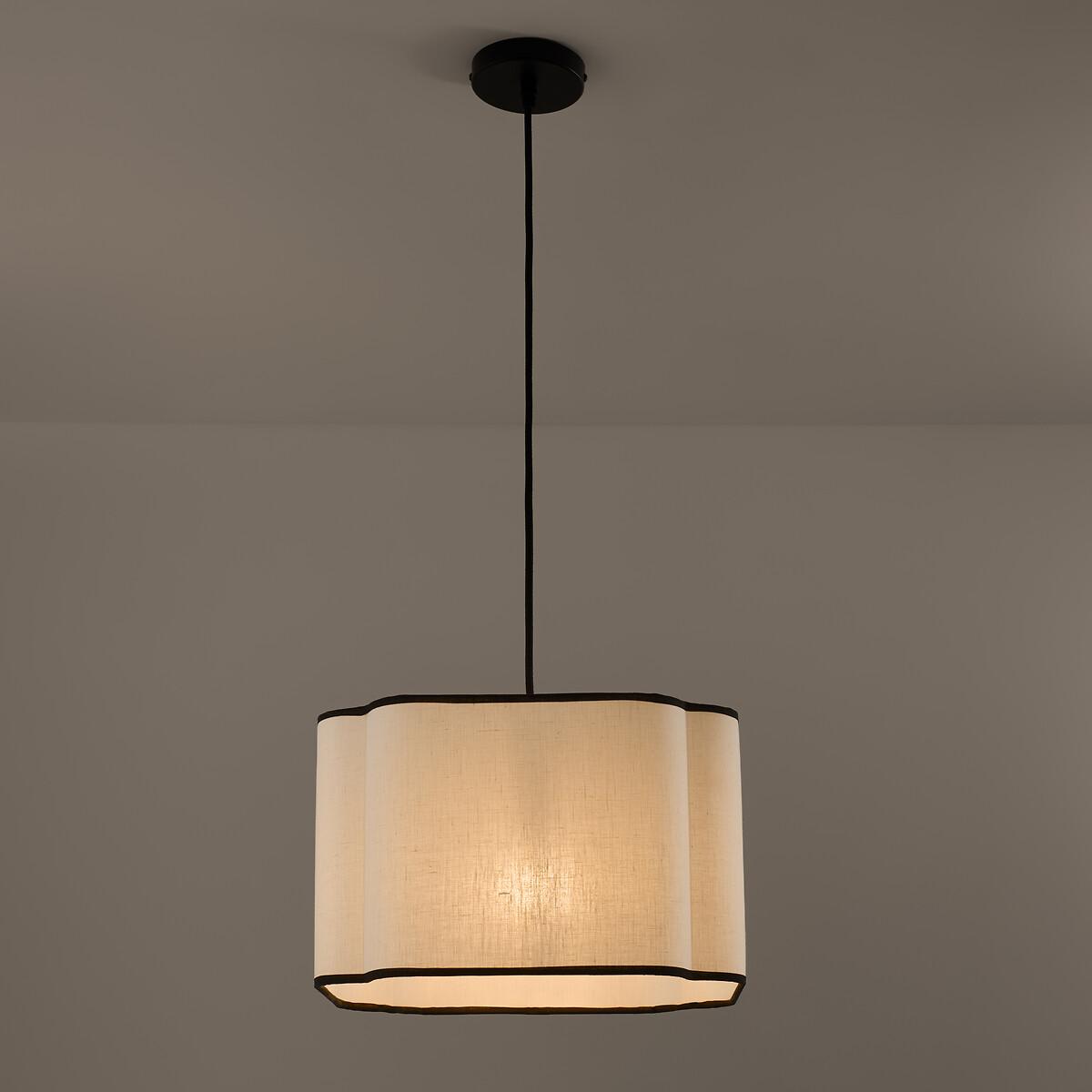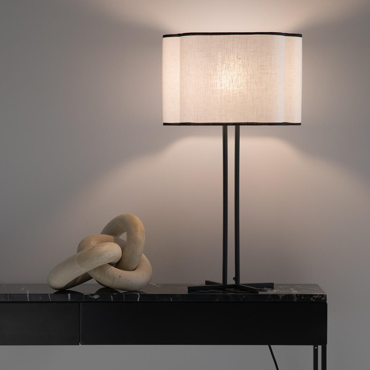 Made in France, the large Suso lampshade is made of washed linen canvas, which diffuses a warm light throughout your room. A black border top and bottom highlights and enhances its delicately sophisticated shape, with its quirky, rounded angles. An elegant and refined AMPM exclusive. Product Details • 100% linen • Washed linen • Black bias border • White epoxy steel wire structure • Supports E27 bulb (not supplied) • Compatible with bulbs of energy classes A to E • This product is sold non-electrified. Compatible with the Sevigni electric cable sold on our site • Pair with the black Hamdi floor lamp base. Dimensions • Width: 33cm • Height: 21cm • Depth: 33cm • Made in France. Parcel dimensions and weight1 parcel • 36 x 36 x 28cm, 0.5kg