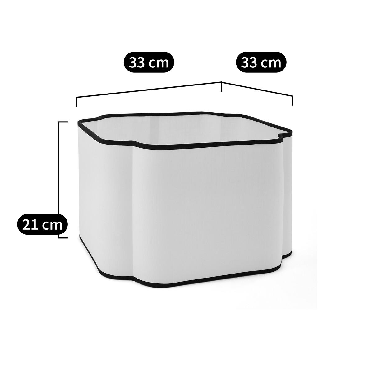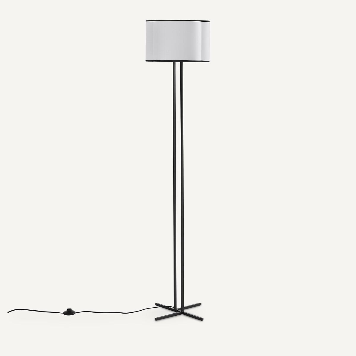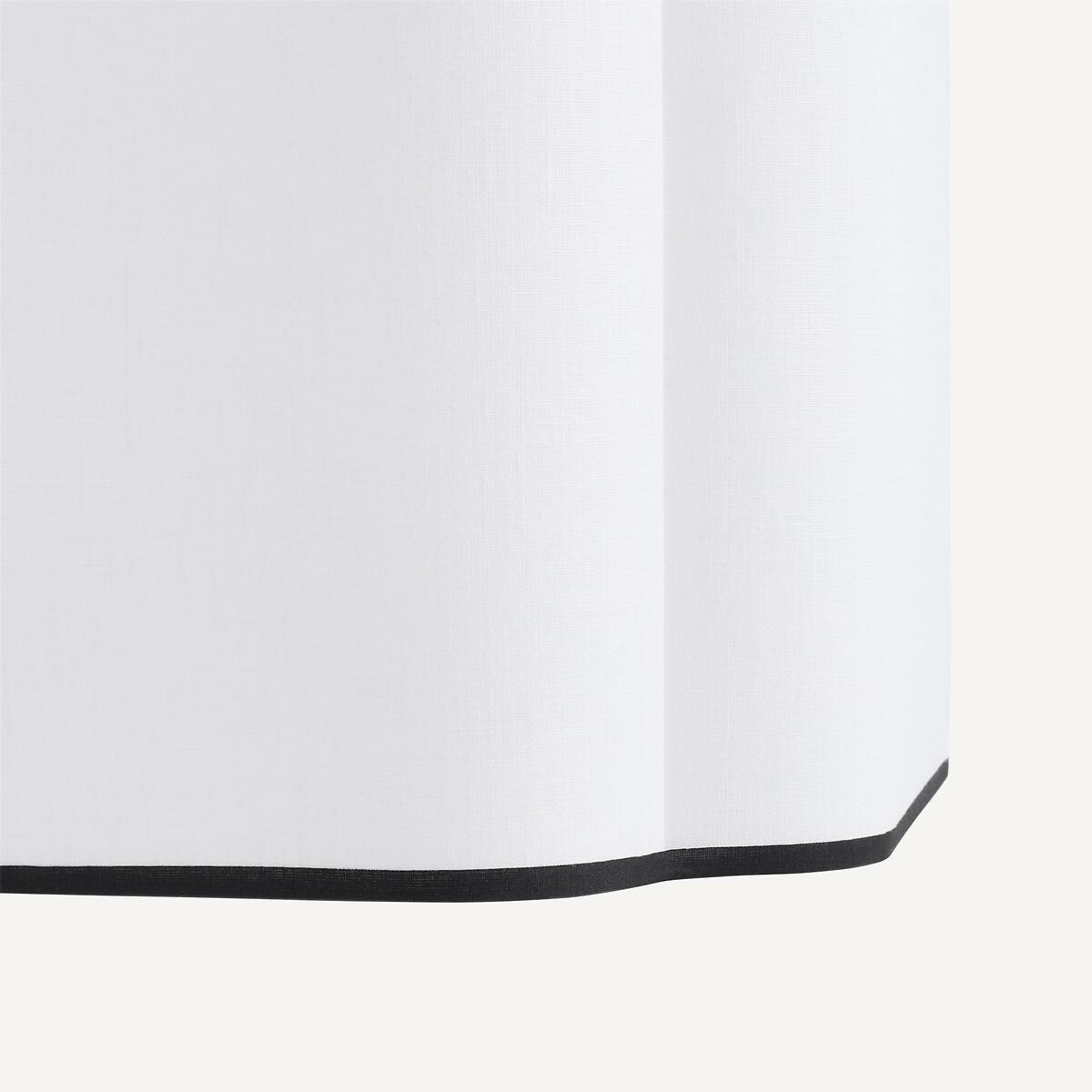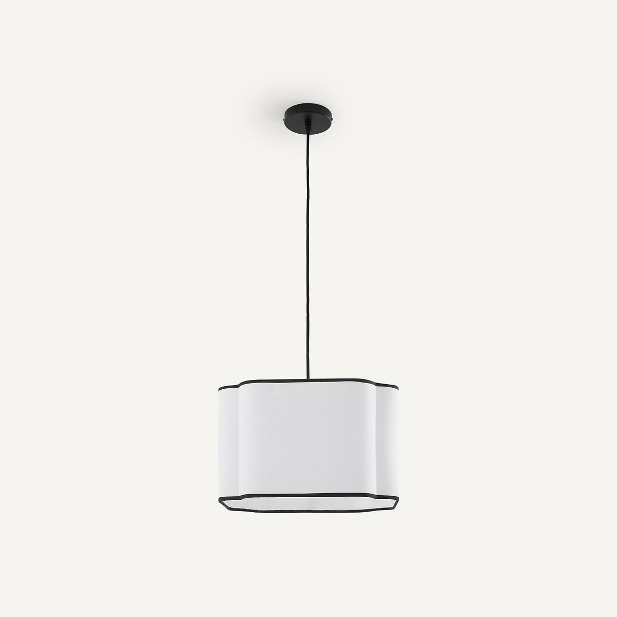 Made in France, the large Suso lampshade is made of washed linen canvas, which diffuses a warm light throughout your room. A black border top and bottom highlights and enhances its delicately sophisticated shape, with its quirky, rounded angles. An elegant and refined AMPM exclusive. Product Details • 100% linen • Washed linen • Black bias border • White epoxy steel wire structure • Supports E27 bulb (not supplied) • Compatible with bulbs of energy classes A to E • This product is sold non-electrified. Compatible with the Sevigni electric cable sold on our site • Pair with the black Hamdi floor lamp base. Dimensions • Width: 33cm • Height: 21cm • Depth: 33cm • Made in France. Parcel dimensions and weight1 parcel • 36 x 36 x 28cm, 0.5kg
